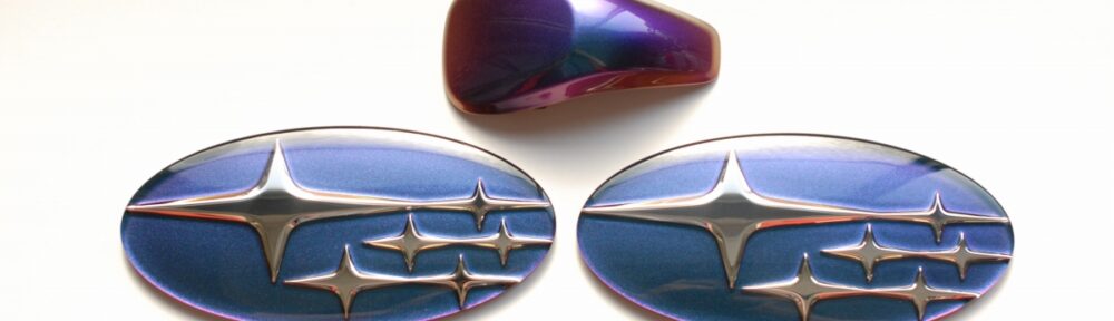 大変お待たせしました!先日本塗りを終えていたスバル純正エンブレムのアクリルプレート前後とシフトノブカバーパネルの塗装、本日完成となります。