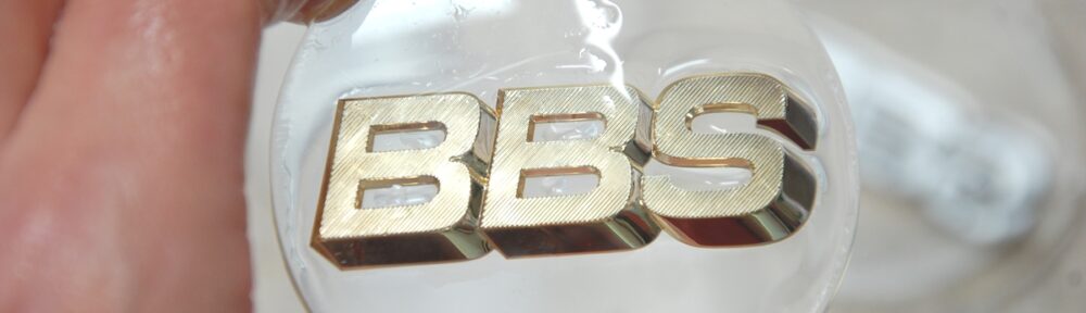 先日裏側の塗装を削り落として検証をしていた日本製BBSホイールセンターキャップです。その後水研ぎ#600→#800でペーパー目を均しておきました。