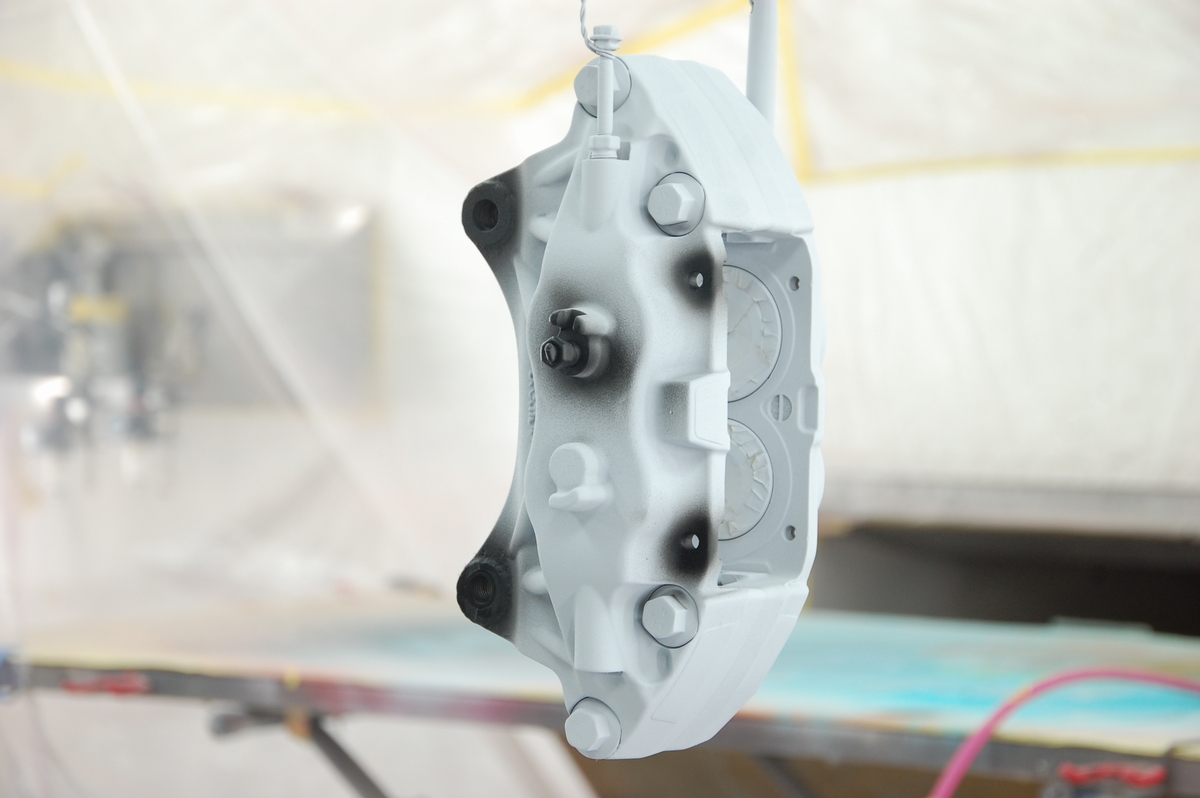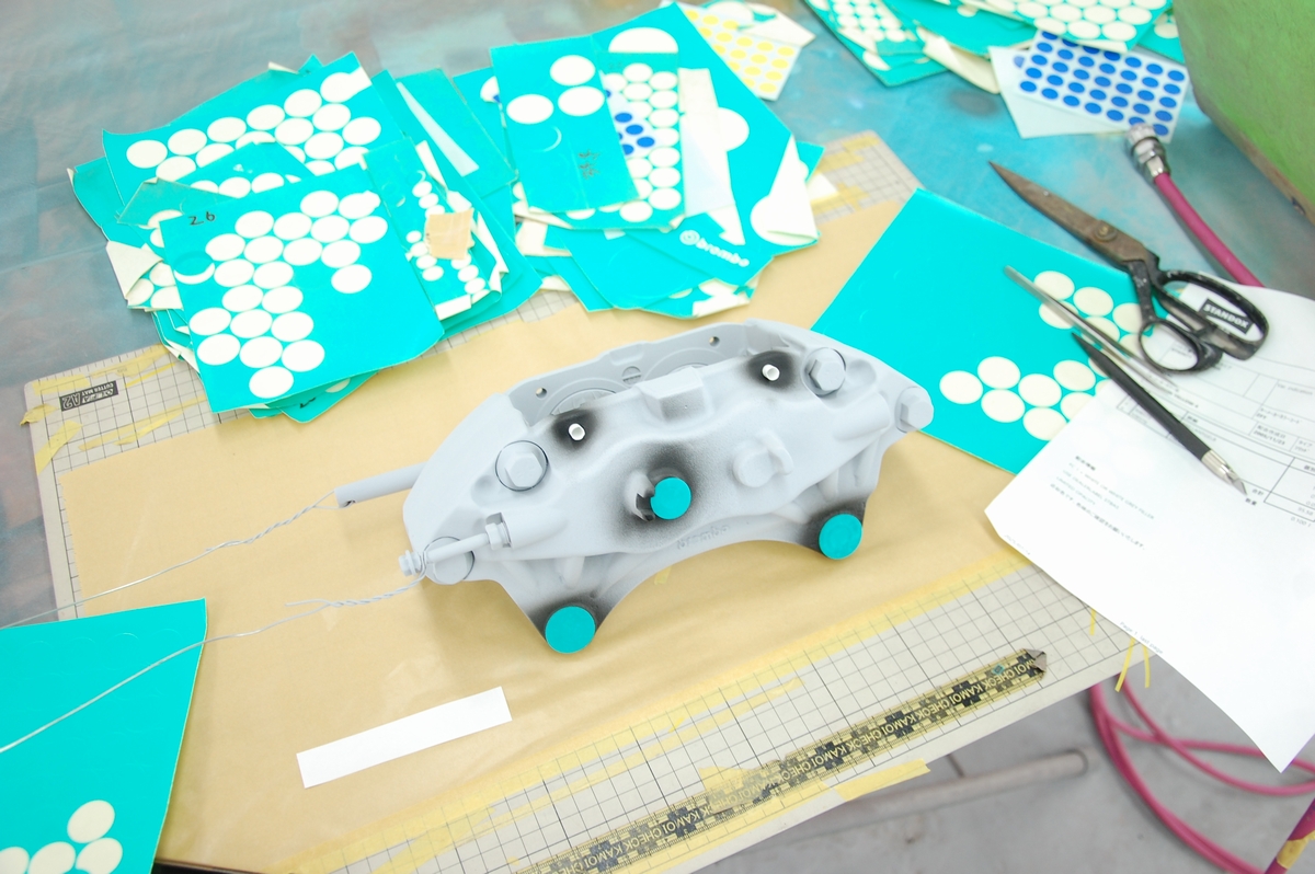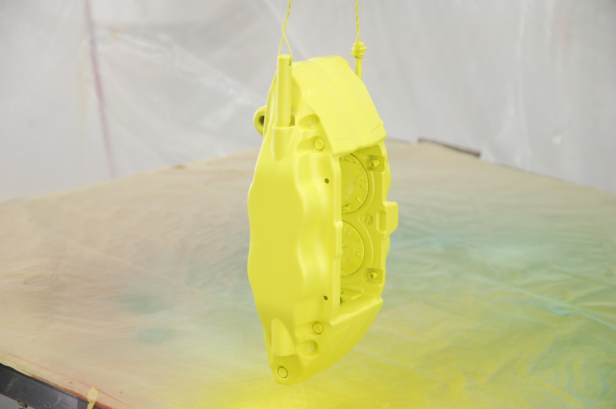 こちらのスバルブレンボキャリパーを塗る前は、業者様からのご依頼でアウディR8に取り付けるレクサスLX600のキャリパーを塗っていました。鋳鉄製の梨地をツルツルに仕上げるという地獄のような作業で、リューターでキャリパーを削ったのはさすがに初めての事でした(費用もブレンボの3倍程となりキャリパー単体でここまでの額は初めてでした)。
