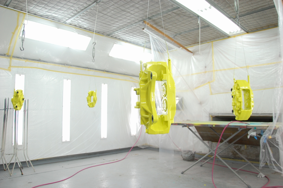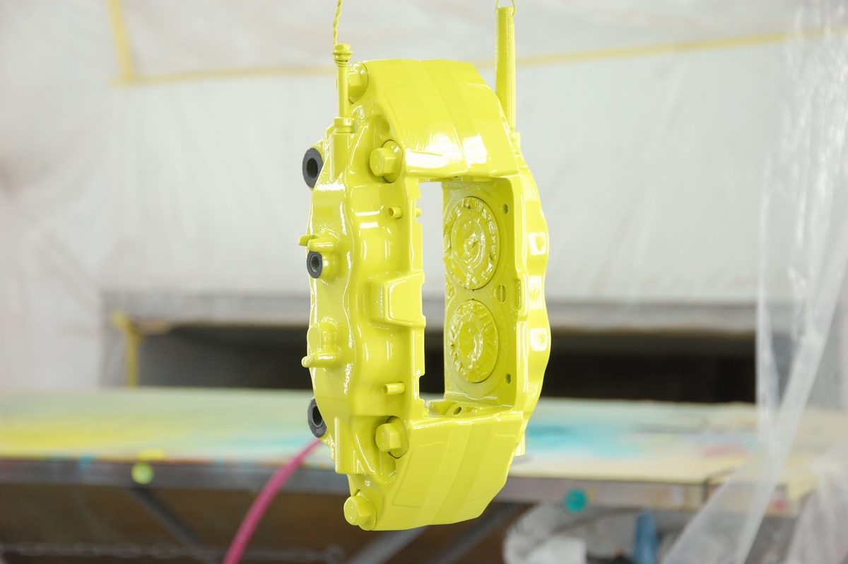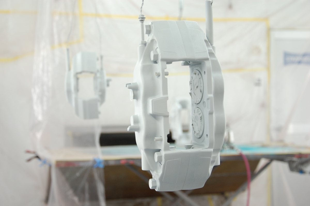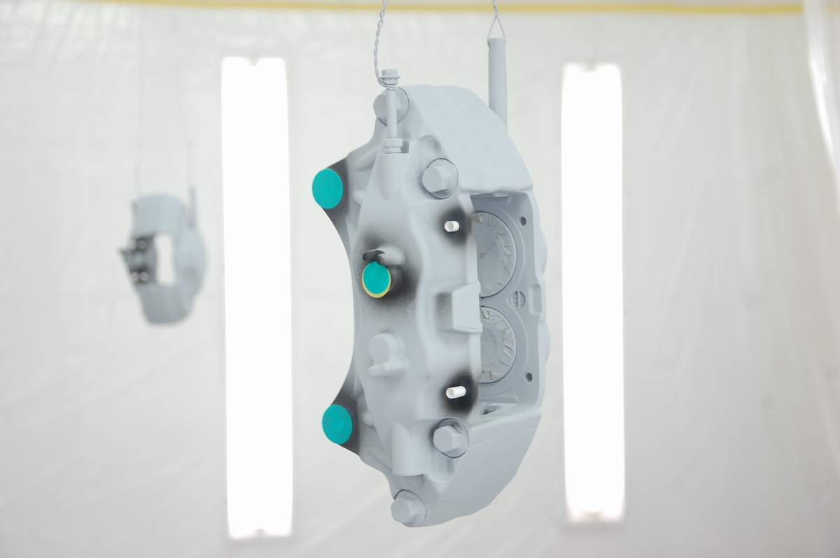 こちらのスバルブレンボキャリパーを塗る前は、業者様からのご依頼でアウディR8に取り付けるレクサスLX600のキャリパーを塗っていました。鋳鉄製の梨地をツルツルに仕上げるという地獄のような作業で、リューターでキャリパーを削ったのはさすがに初めての事でした(費用もブレンボの3倍程となりキャリパー単体でここまでの額は初めてでした)。
