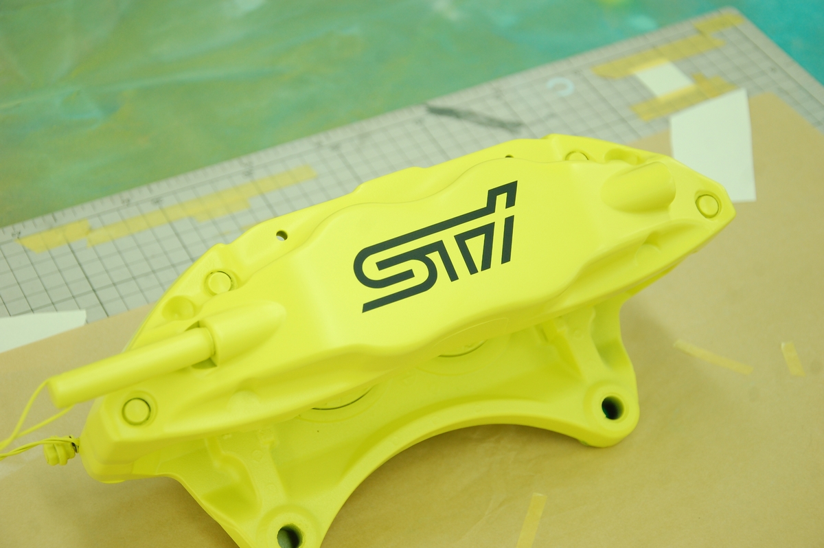 先日プライマーを塗っておいたスバル純正ブレンボキャリパーです。