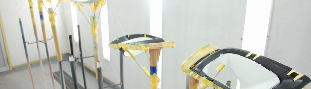 樹脂素材としては塗料が密着し難い種類=ポリプロピレン樹脂なので、素地が露出した箇所には念のためガスプライマー処理を行い、その後はいつも通りプラスチックプライマーを塗布しておきます。