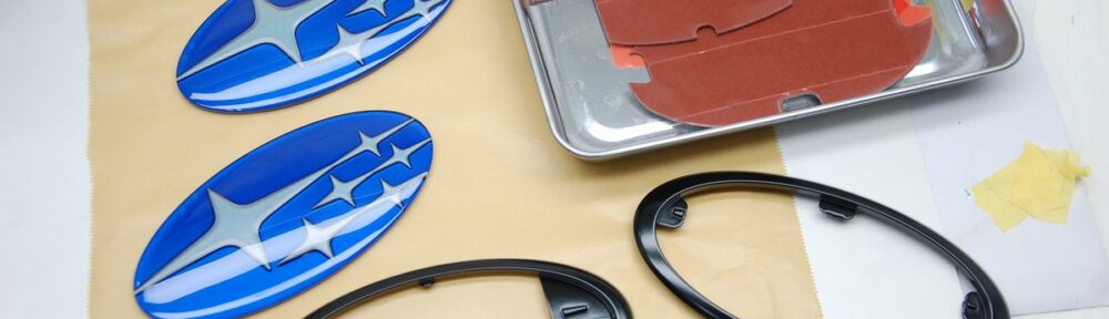 またスバルエンブレムのアクリルプレートは塗料中の溶剤によってひび割れし易いので、各工程でクリアーを塗ってそれを防止しています。