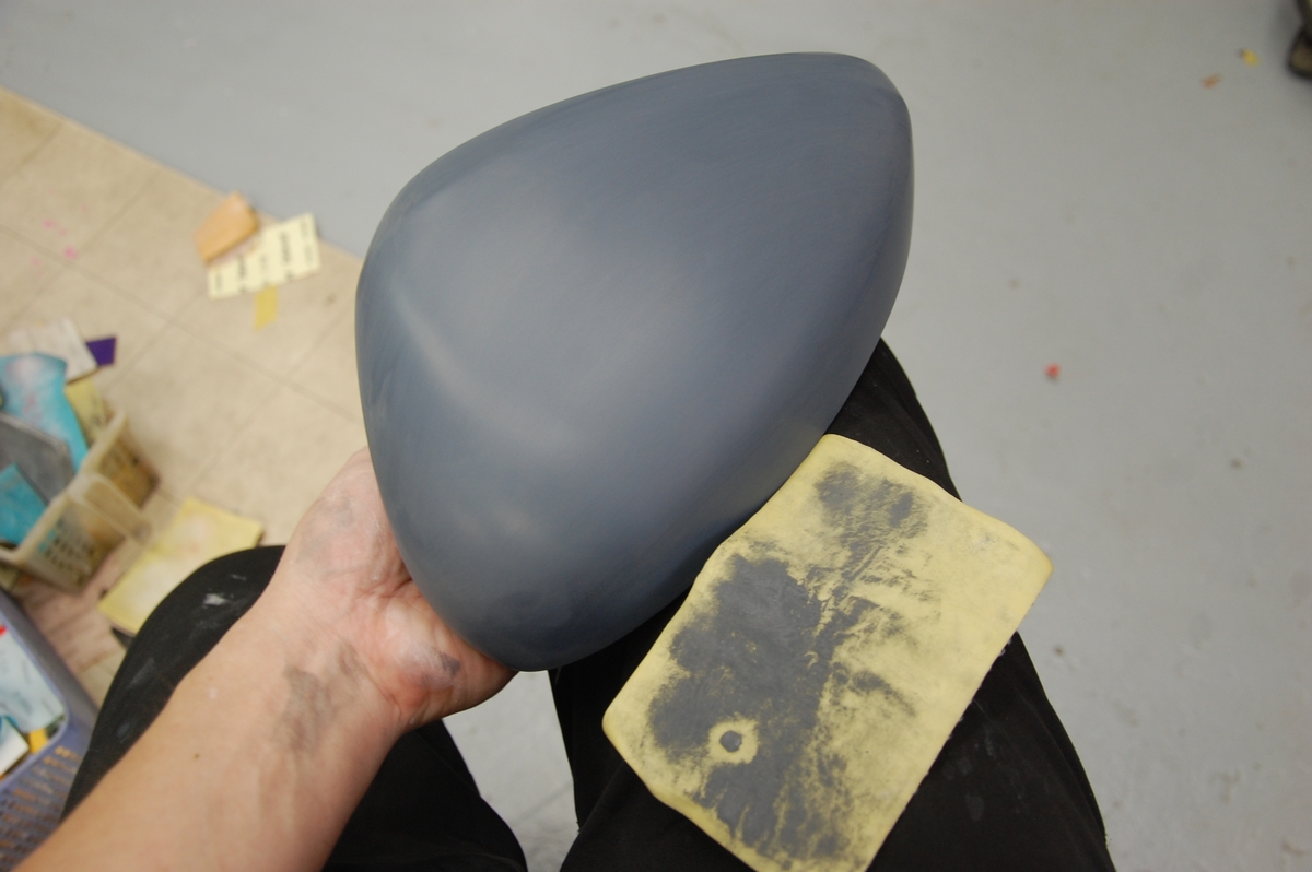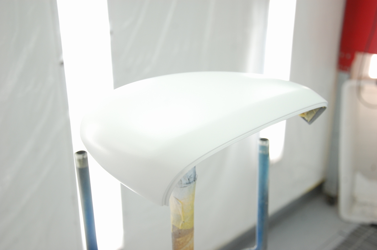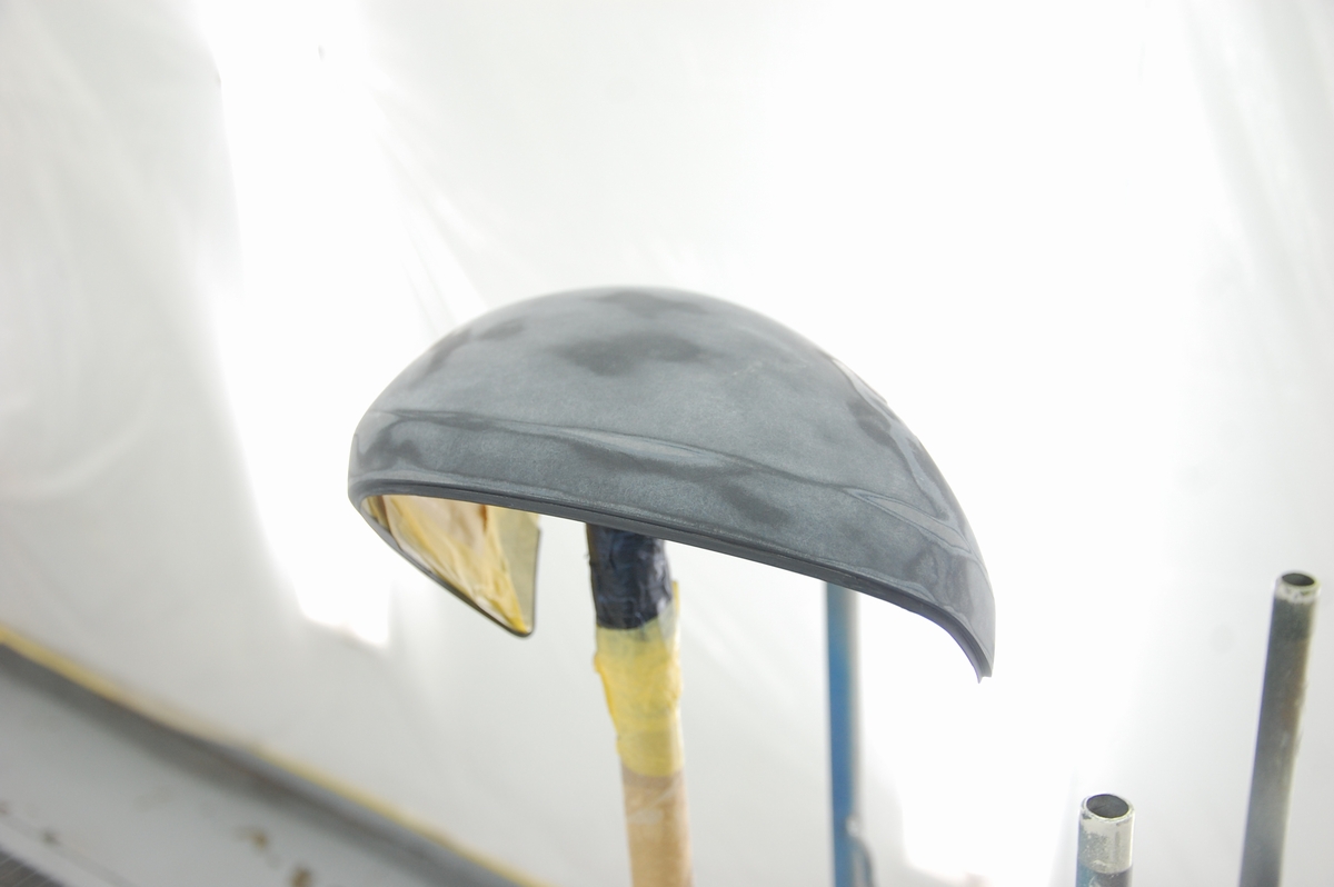 反対側のミラーカバーは新品でプライマーサーフェサーが塗ってあるので、脱脂清掃後に#800相当の布状研磨副資材(アシレックスレモン)で空研ぎを行っておきました。