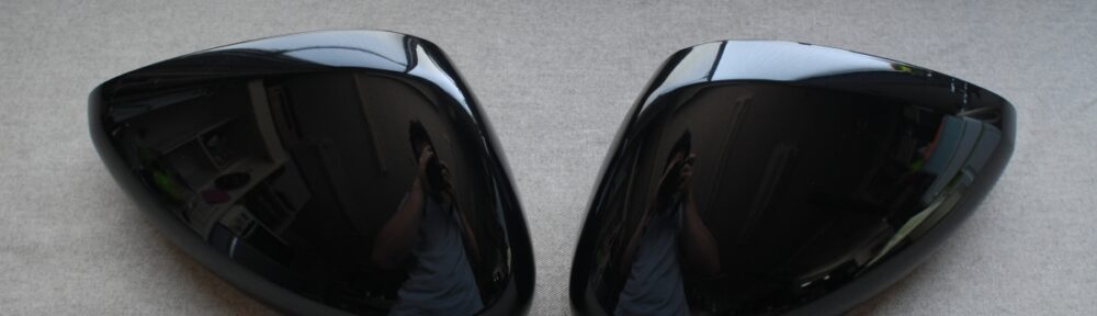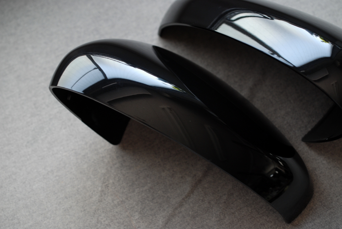 対して右側のミラーカバーは傷の無い状態なので、足付け処理だけしてそのまま上塗りが可能となります。もし右側のような新品のミラーカバーが1万円以下で買えるなら、左側も新しい物に交換した方がトータルでは安価で済む筈で、ただ実際はそんなに安くはないので直して使っているという訳ですね。日本車の場合はさらにカラード製品(ボディカラー塗装済み品)の設定があるので、そもそも塗り直すより交換した方が安いし早い!となる訳ですね。