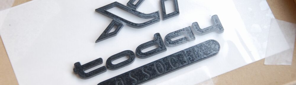先日到着しておりましたホンダトゥデイのアクリルエンブレムです。こちらはおよそ9年前に当店にて制作~塗装を施した物で、今回はこちらの両面テープの再作成~貼り付け作業を承りました。この度もご贔屓頂きありがとうございます!