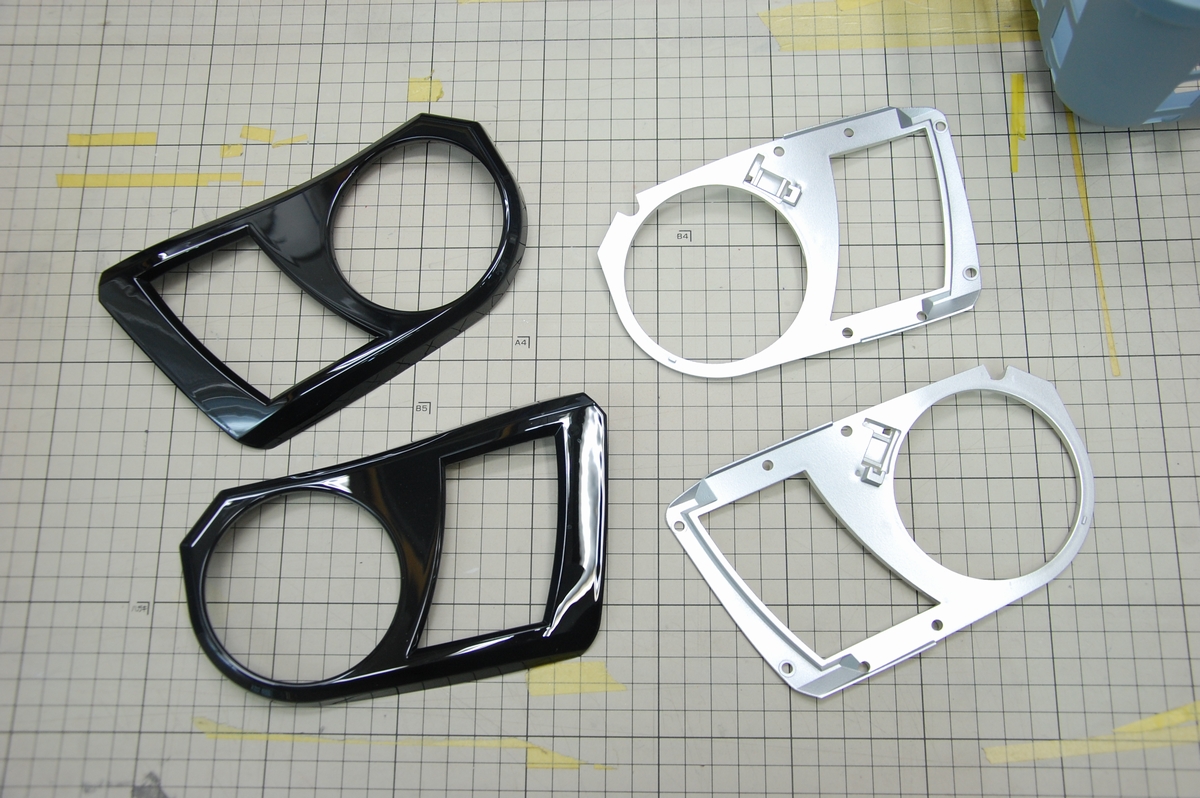裏側のパーツはザラザラとした梨地にそのままシルバーを塗っただけの状態だったので、こちらも#800で研磨し、