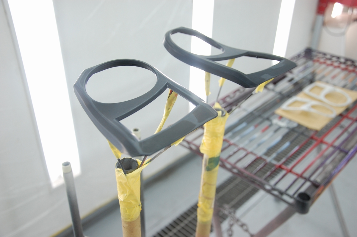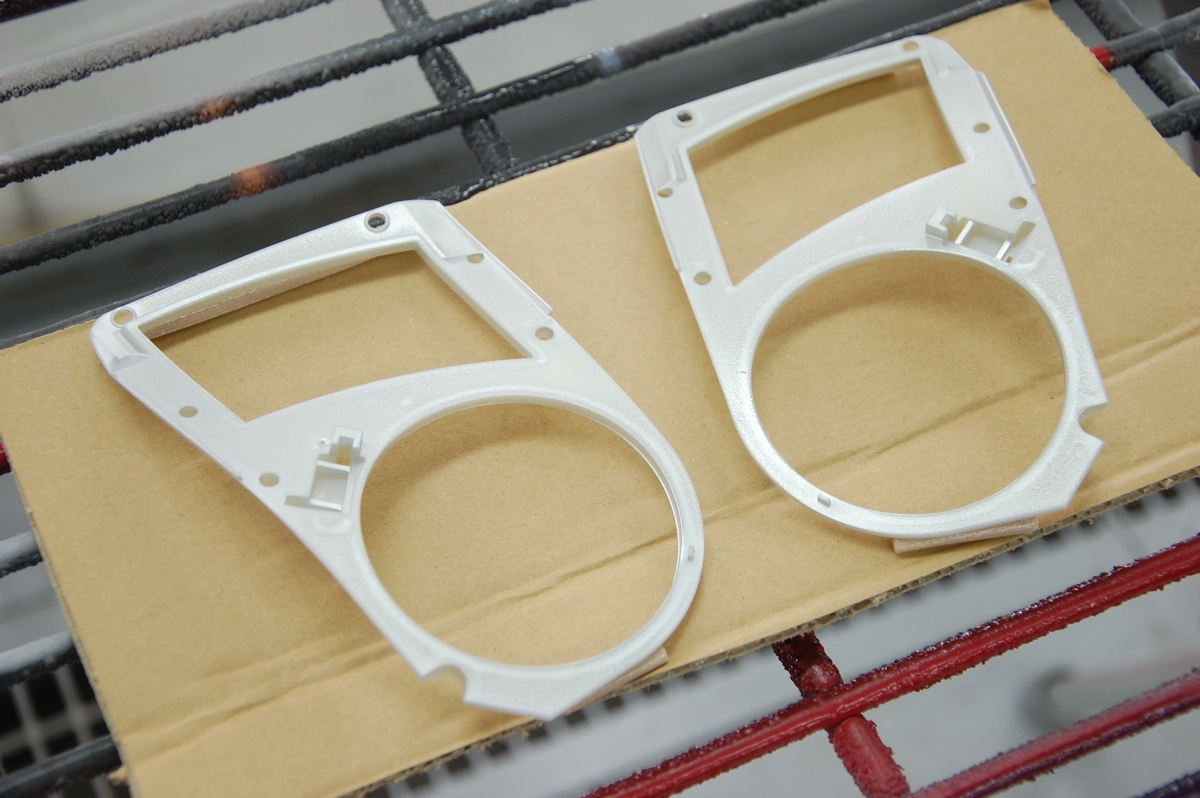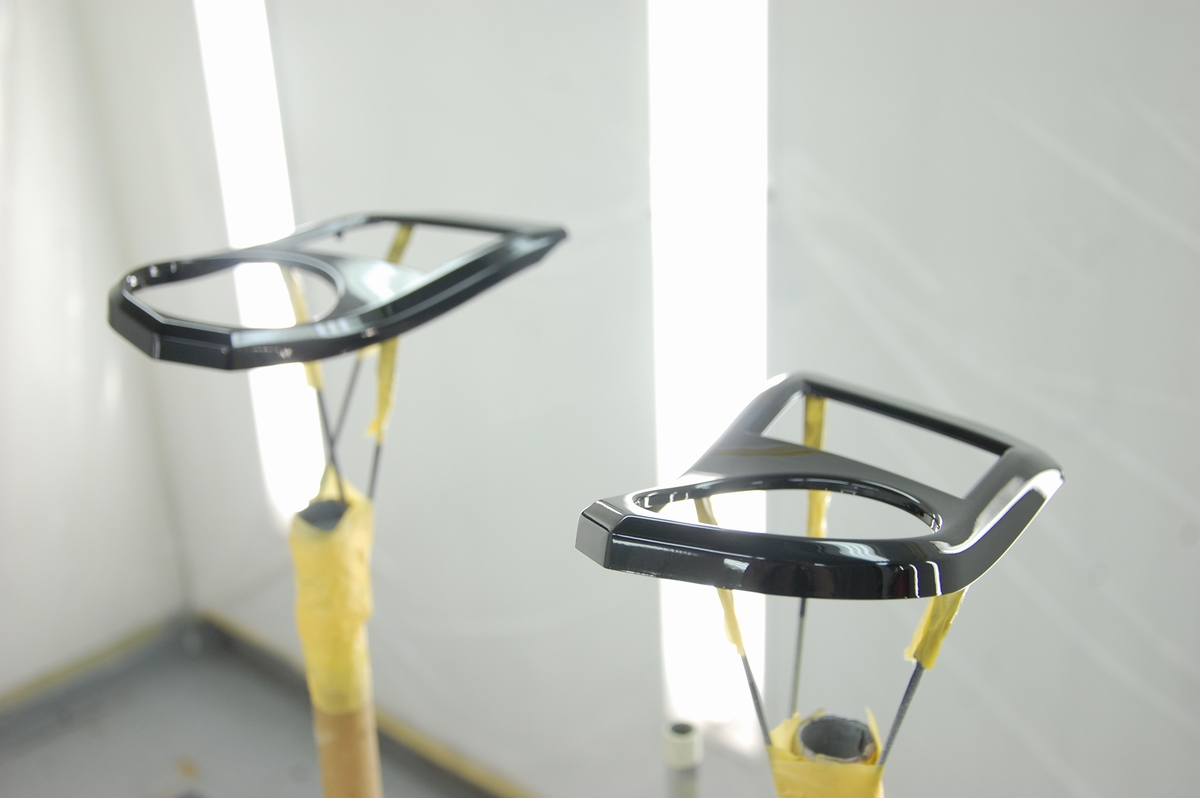 一旦下塗りをしてザラザラを埋めておくとこの後に塗る艶消し黒がツルっとした仕上がりになります。尚、本来であれば「研磨→プライマー塗布→サフェーサー塗布→完全硬化→研磨」としたい所ですが、それだとコストが上がり過ぎてしまう為ですね。