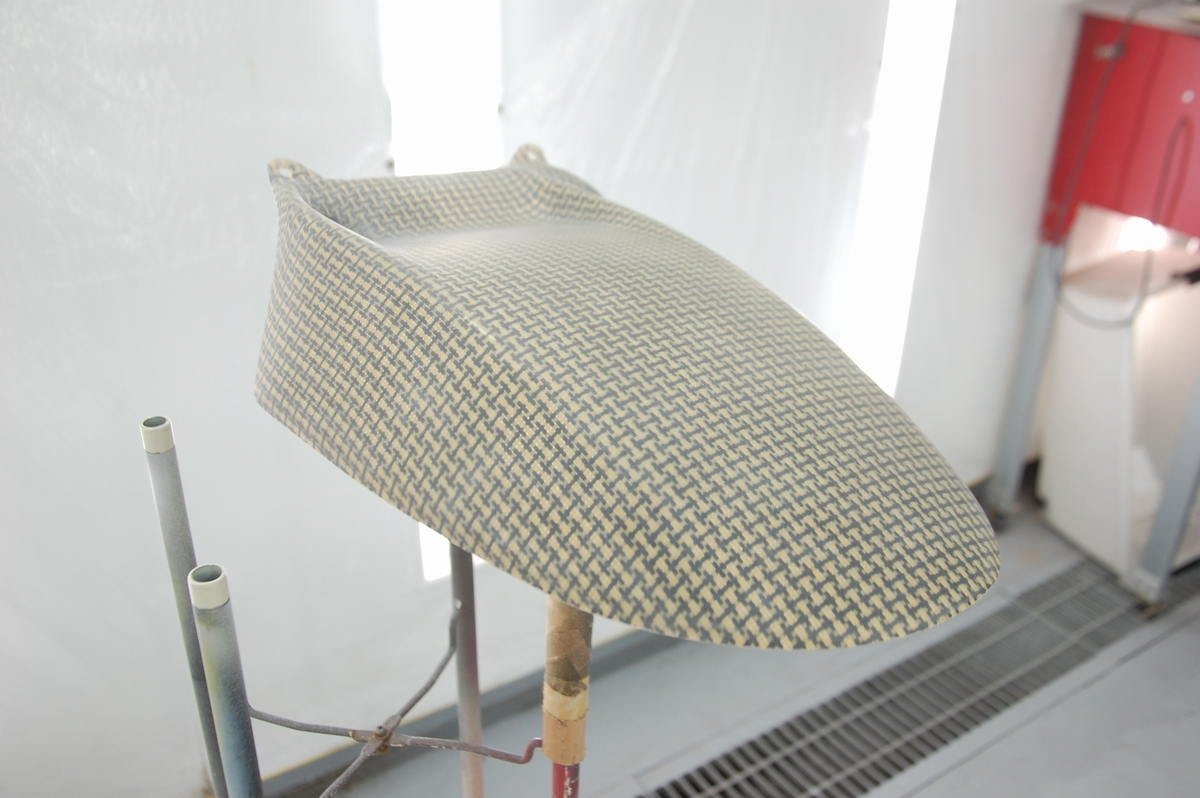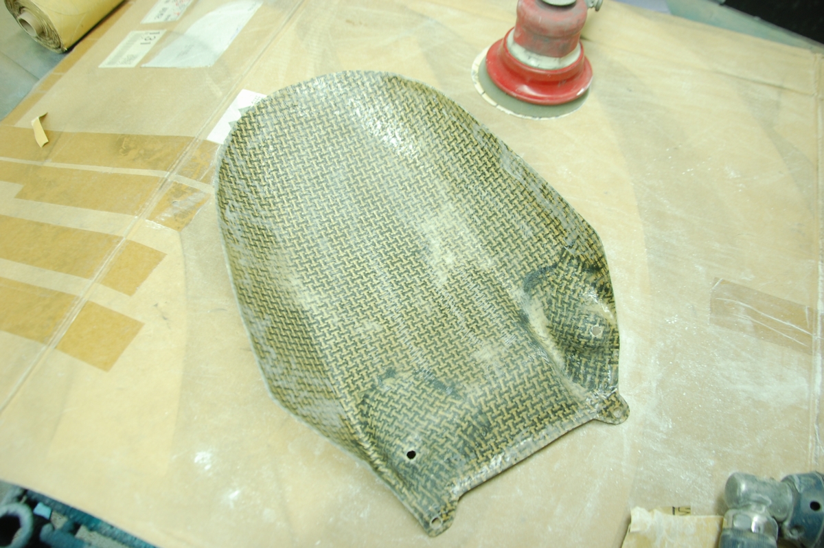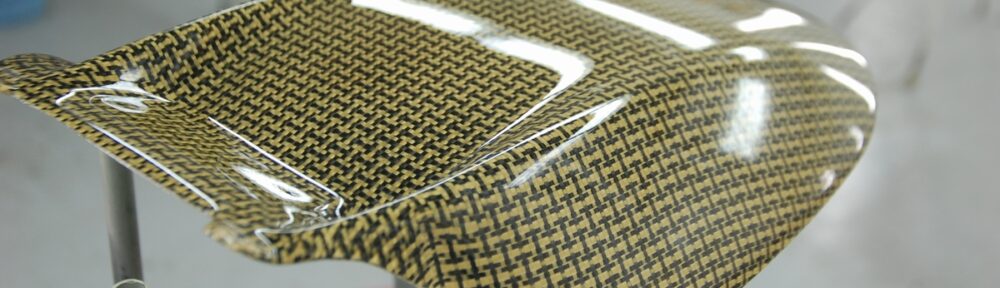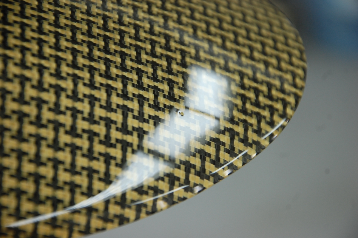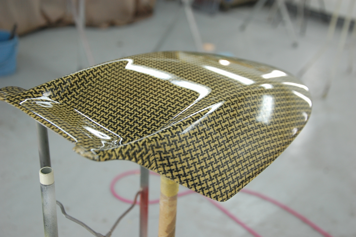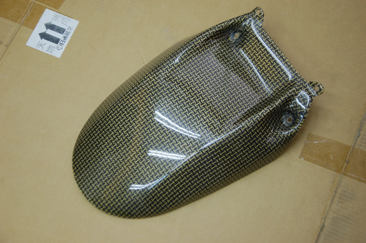 先日お預かりしておりましたバイク用のカーボンケブラーリアフェンダーです。恐らくはアプリリアに装着される物ですね。