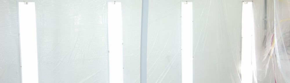上下それぞれに針金を吊るしているのは1コート目と2コート目で上下を入れ替える為で、これにより塗りムラを解消して膜厚を均等にするようにしています。塗り方についてはどうしても長年体に染みついてしまった癖というのがあるので、被塗物の方を変えて強制的に均等化させようという感じですね。