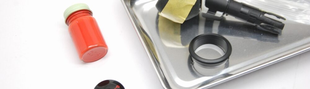 先日本塗りを終えていたポルシェケイマンGT4RS純正のシフトノブとそのボタンです。その後60℃40分程の熱を掛けて塗膜を硬化させ、再度足付け処理→クリアー塗装のみを行っておきました。