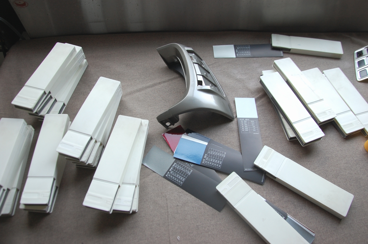 色見本帳の中から近い色を探しましたが、かなり細かいメタリック原色が使われているようで似たような物がありません。