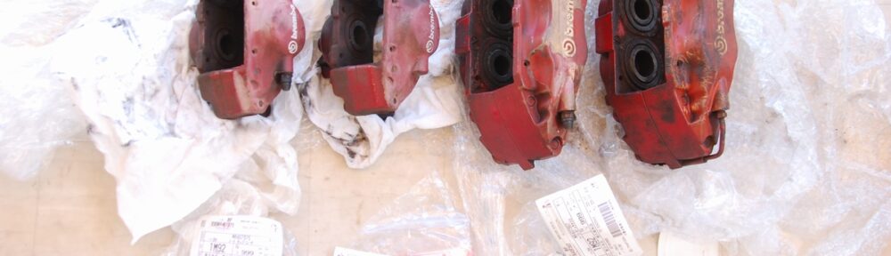 先日到着しておりましたランサーエボリューション純正のブレンボキャリパー一式です。こちらのオーナー様は以前同車リヤキャリパーのみ塗装をご依頼頂いていた方で、それとは別にもう1セットを良い状態で持っておきたいとの事でご依頼頂きました。この度も当店をご贔屓頂きありがとうございます!