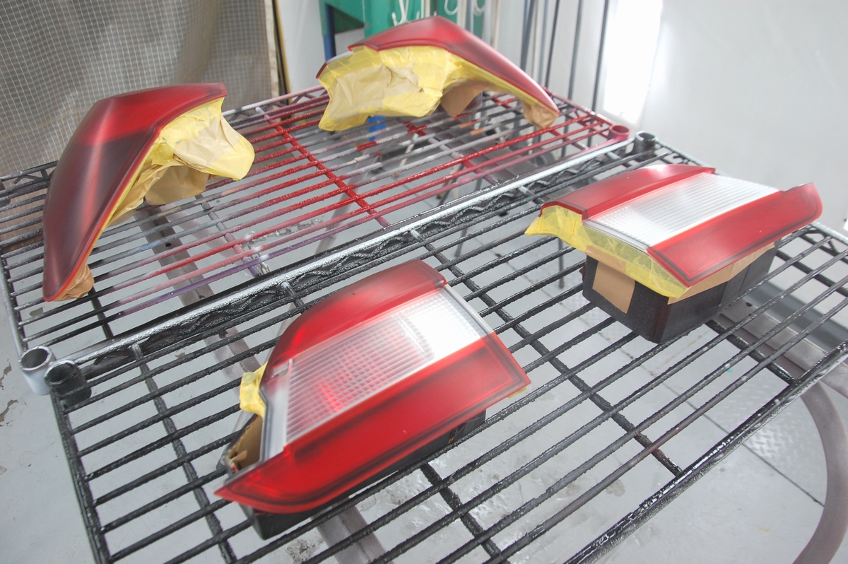 先日下準備を行っておいたスバルレヴォーグ純正テールランプ一式です。