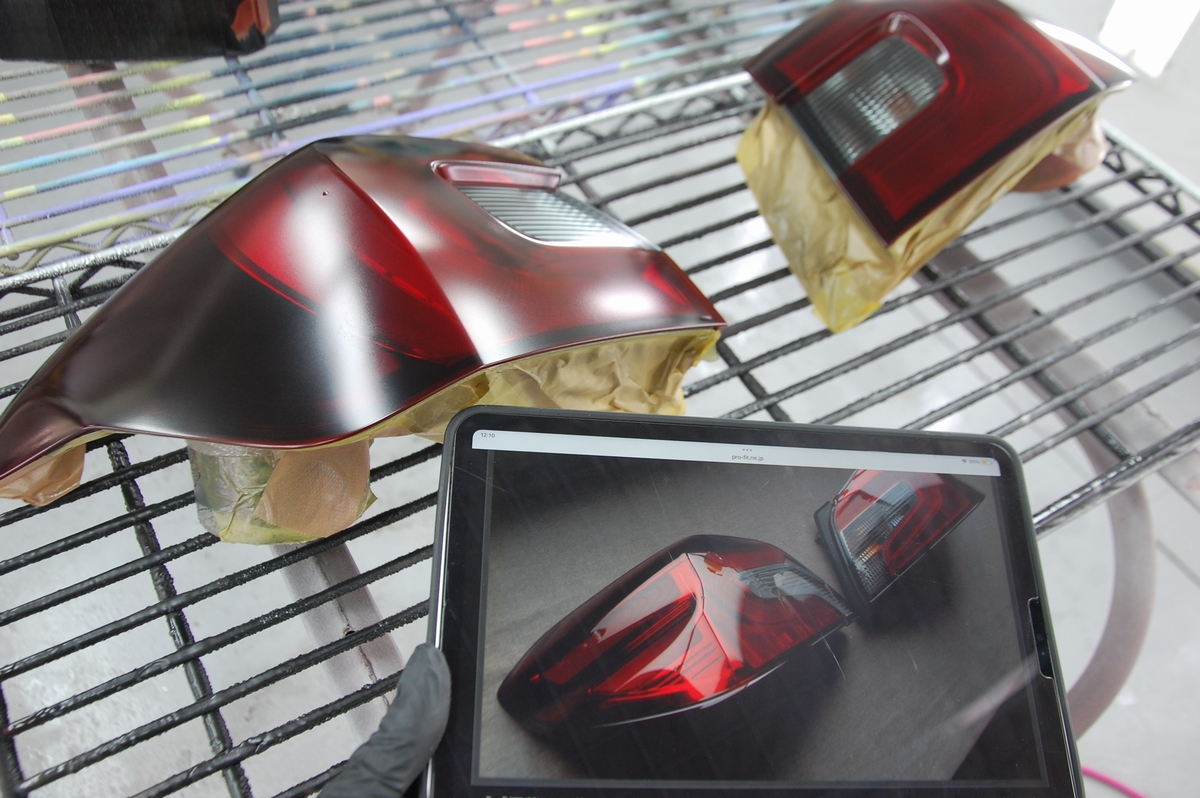 含有量を減らしたスモーク=ベースコートを4~5コート程に塗り重ねてご指定の濃さに近づけます。