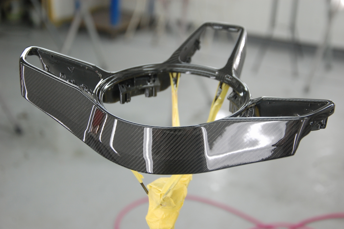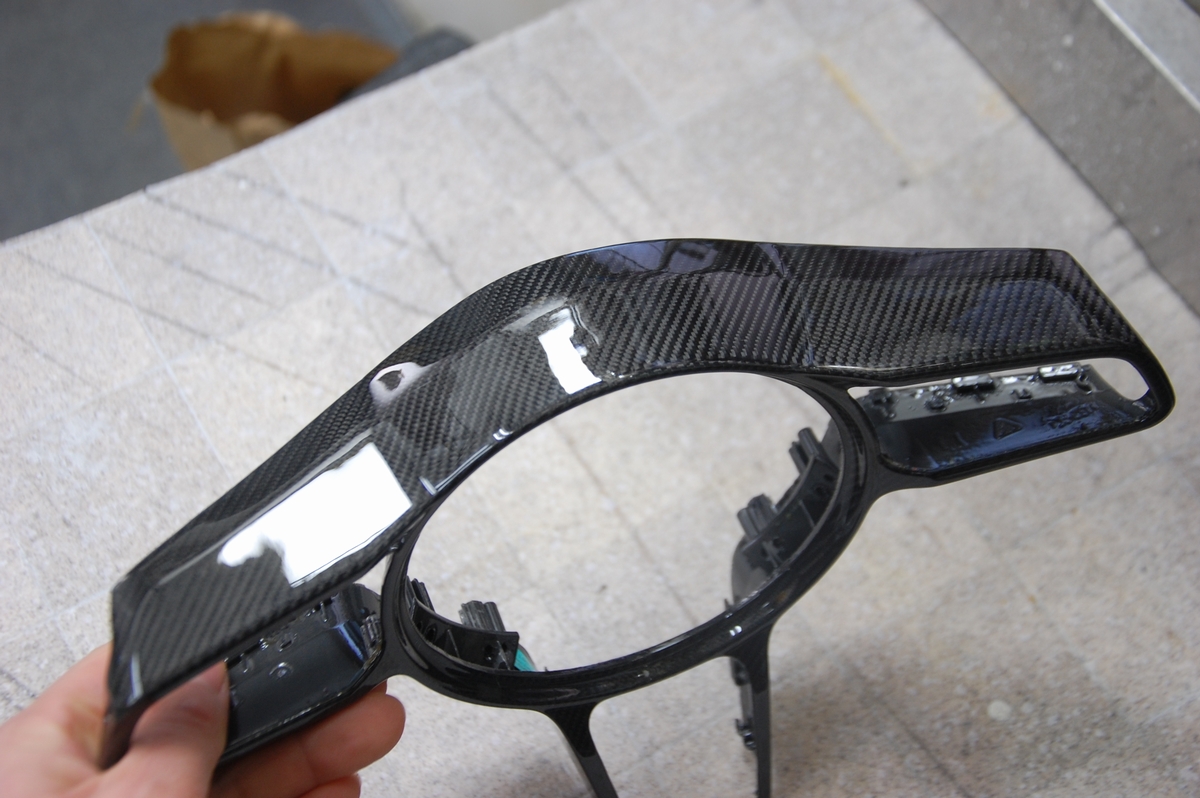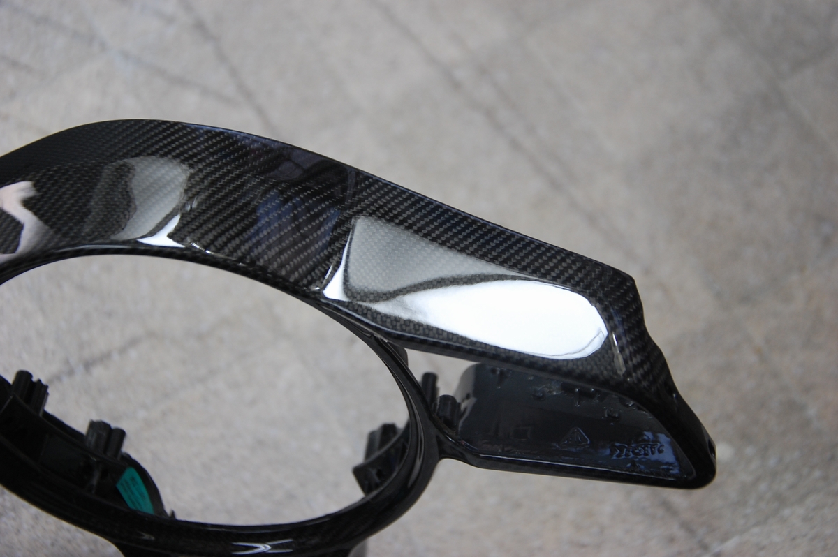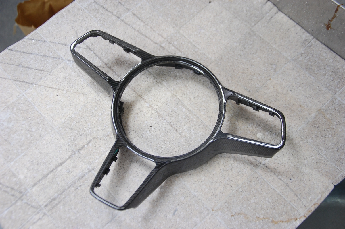 先日1回目の下塗りを行っておいたポルシェ純正のカーボンステアリングトリムです。