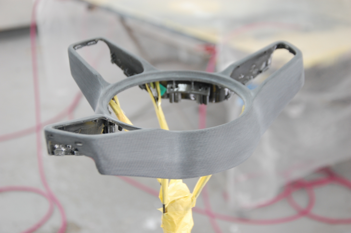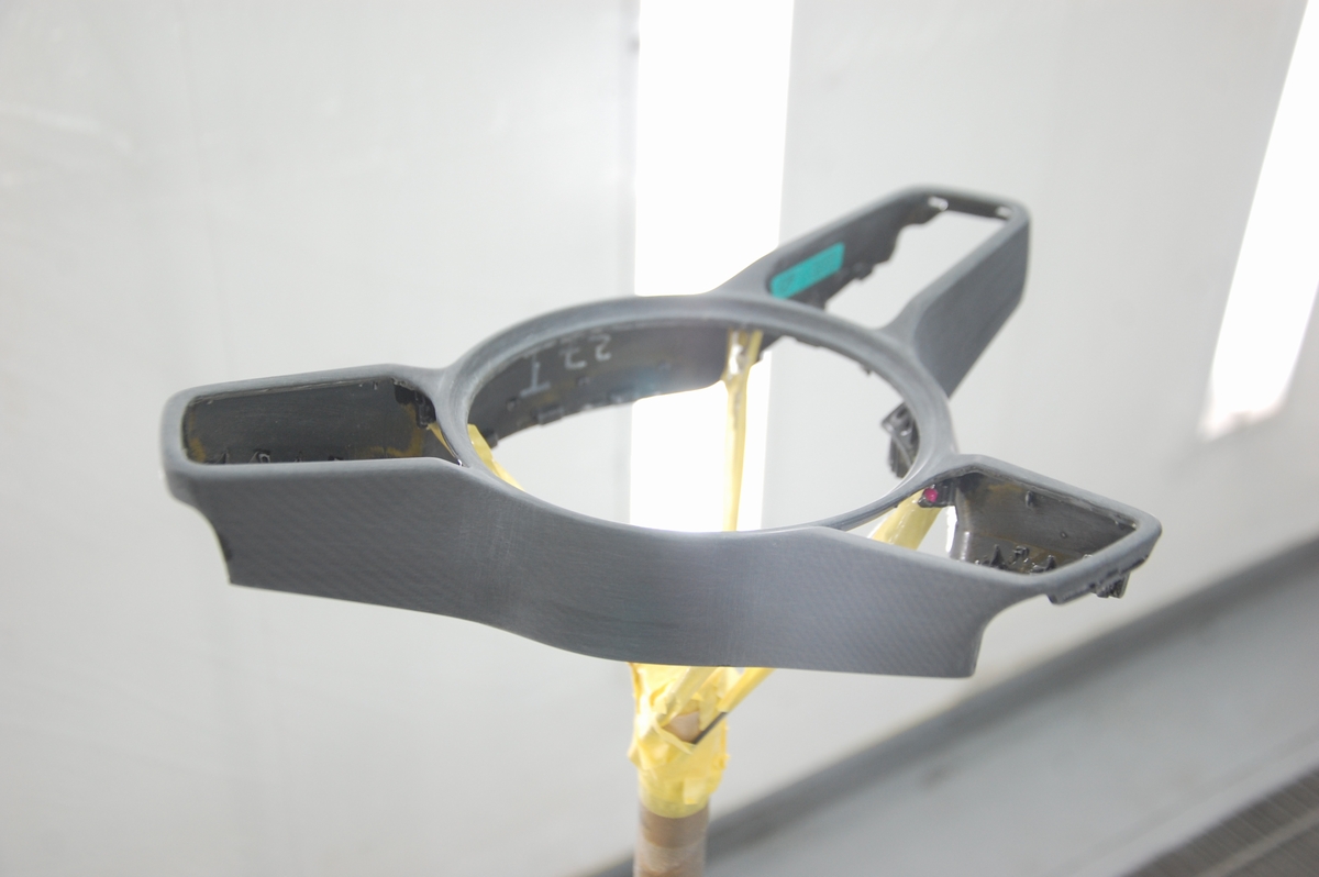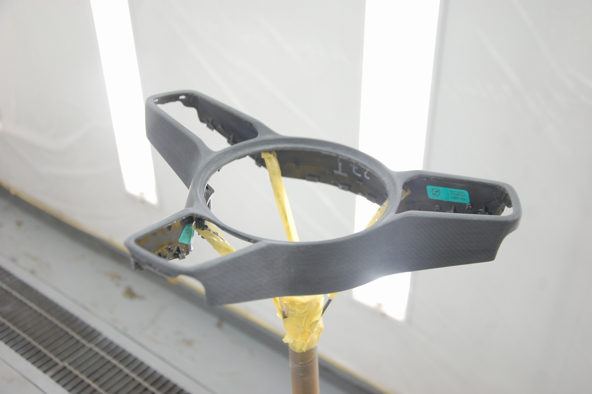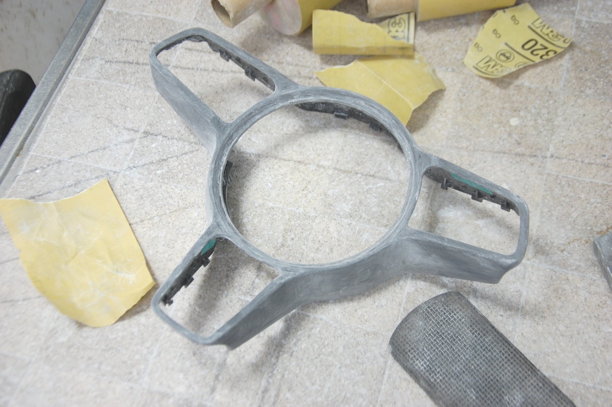 先日1回目の下塗りを行っておいたポルシェ純正のカーボンステアリングトリムです。