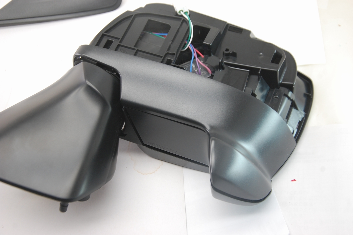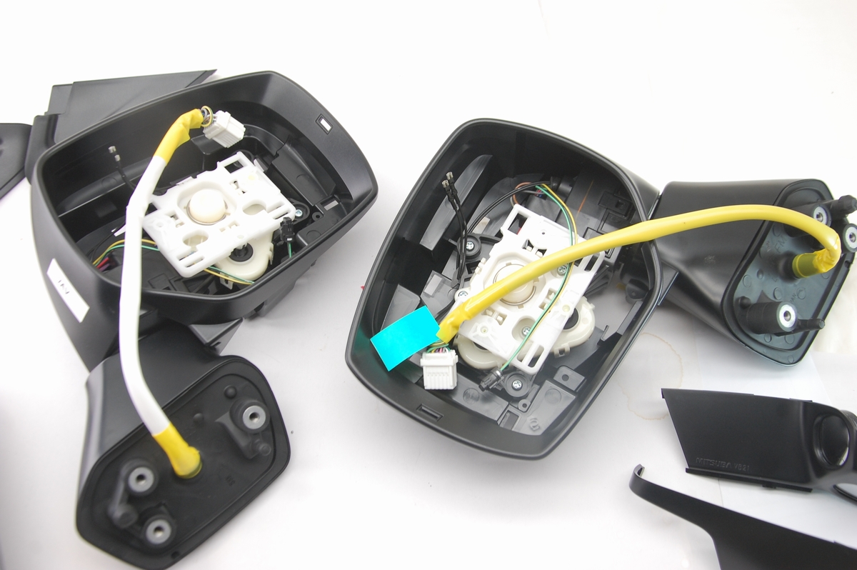 ミラーを動かす為のモーター部分はネジで止まっているので取り外しは出来るのですが、配線を抜けないので今回こちらはこのままとします。