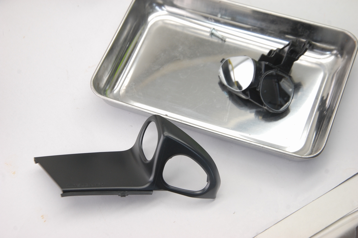 今回塗装するにあたってのネックとしては、ミラー本体と土台部分が繋がっている事で、