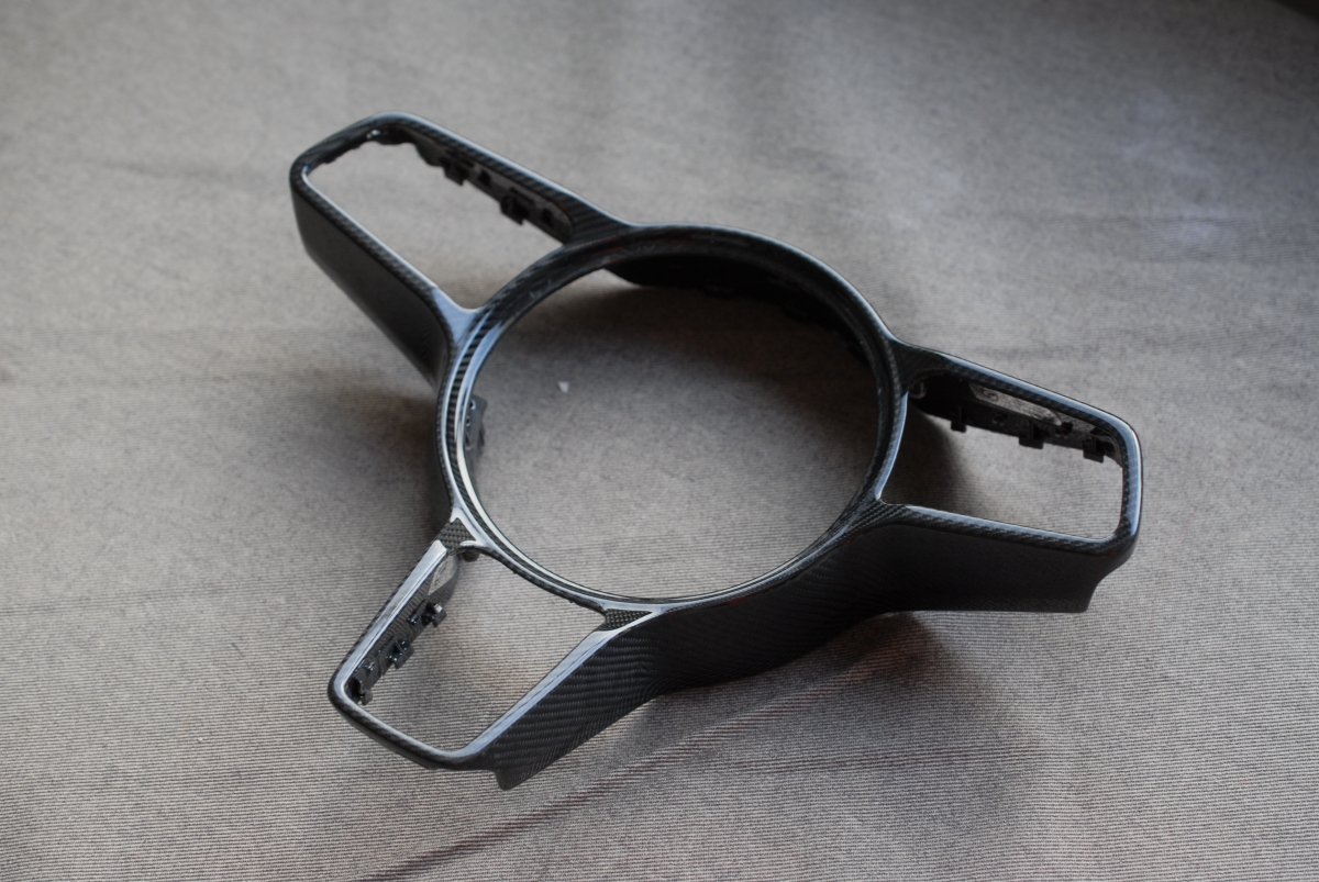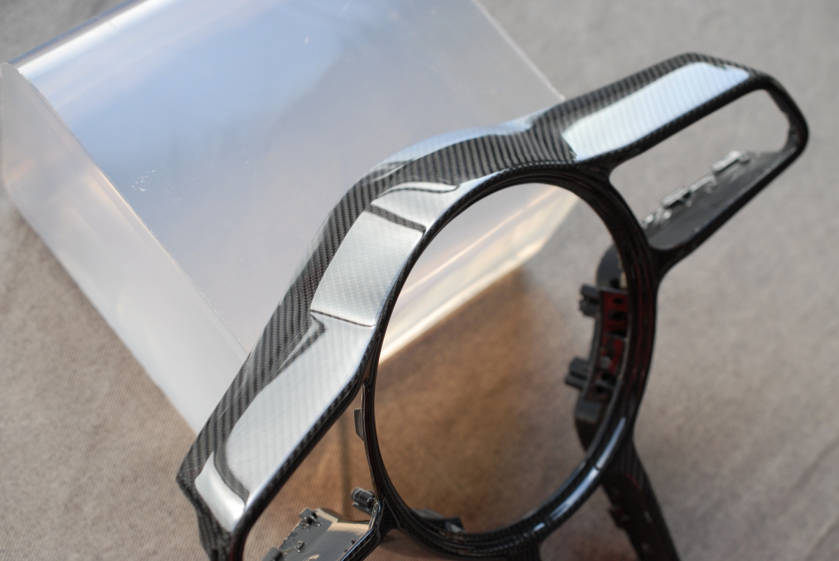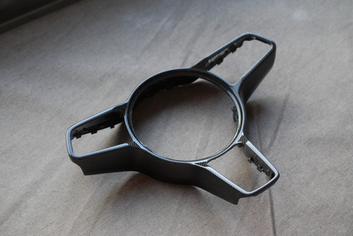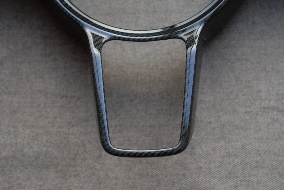 大変お待たせしました!先日本塗りを終えていたポルシェ純正カーボンステアリングトリムの塗装、本日完成となります。