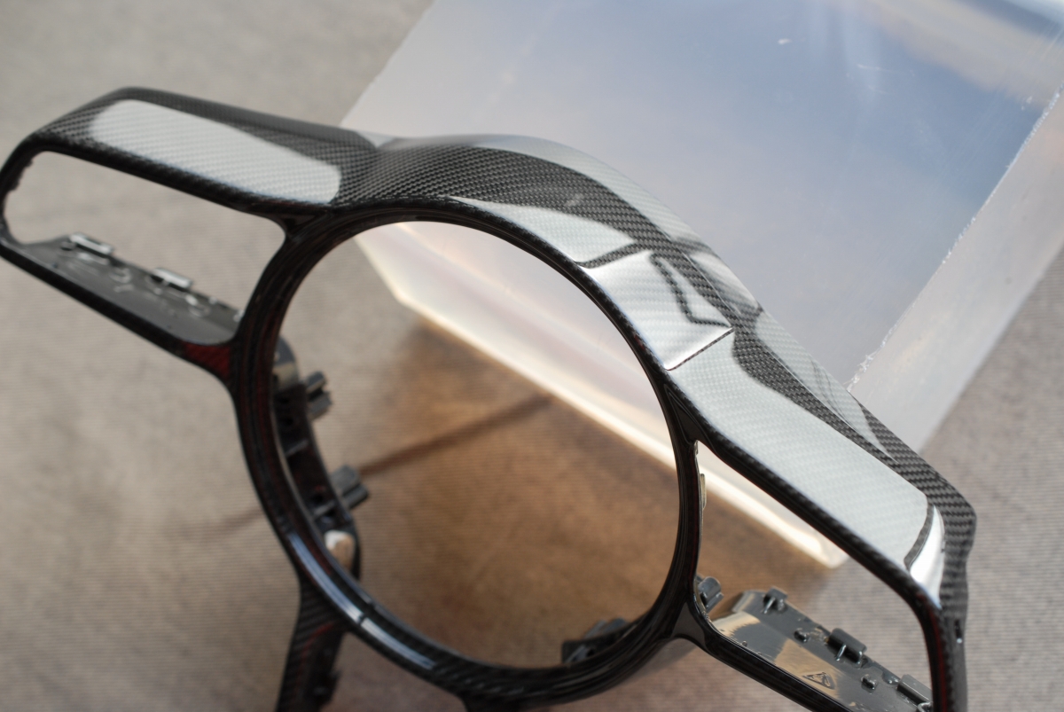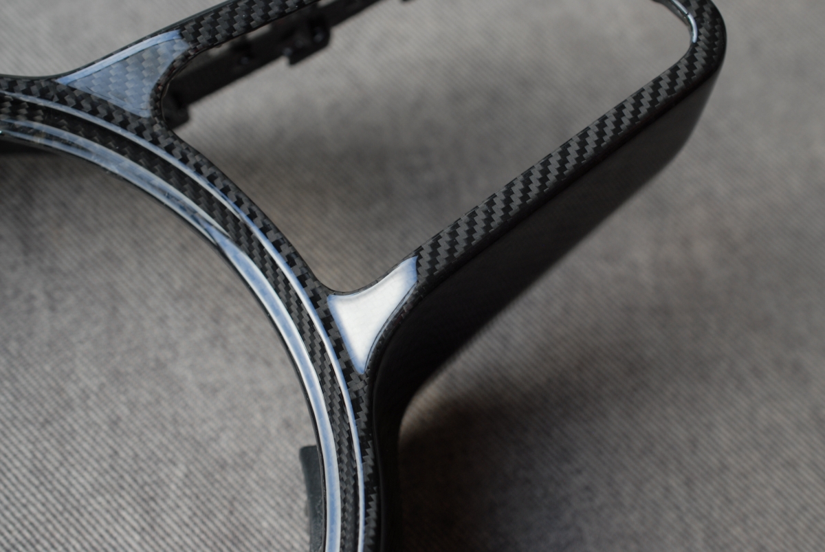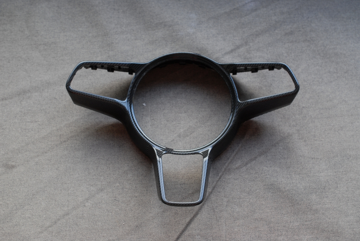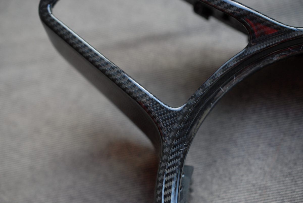 大変お待たせしました!先日本塗りを終えていたポルシェ純正カーボンステアリングトリムの塗装、本日完成となります。