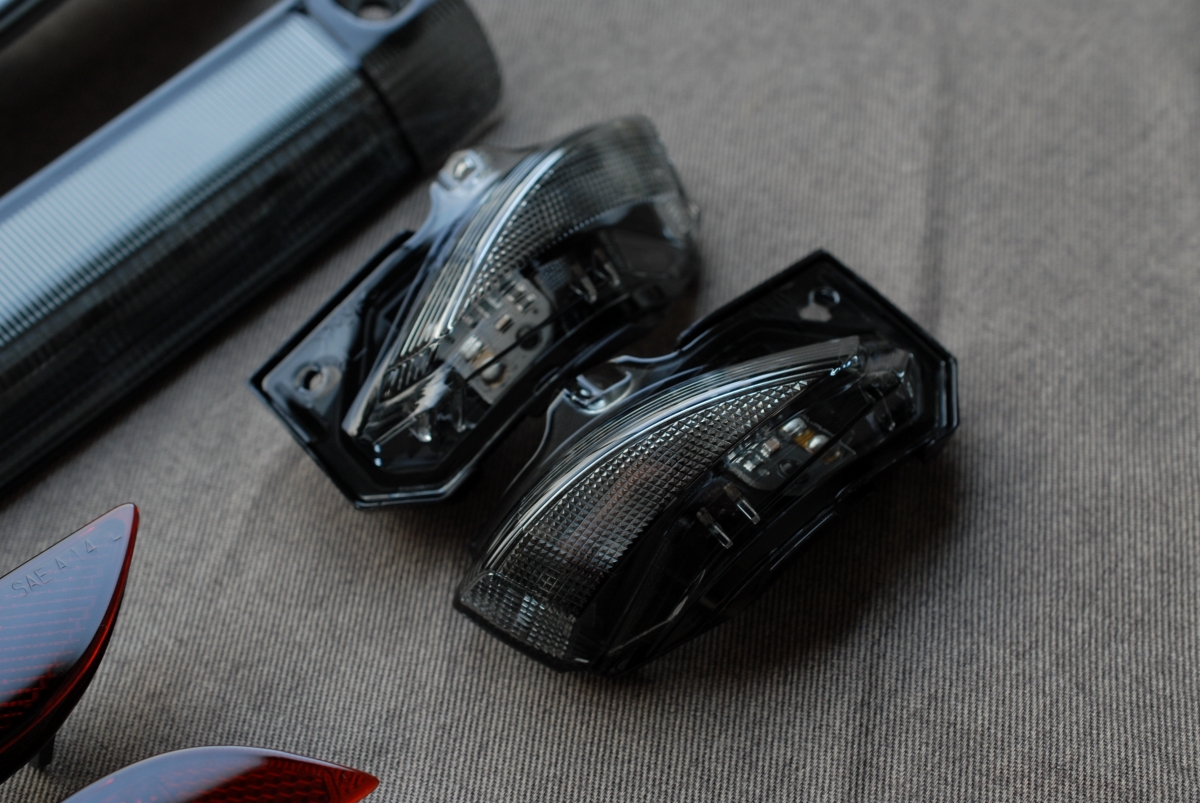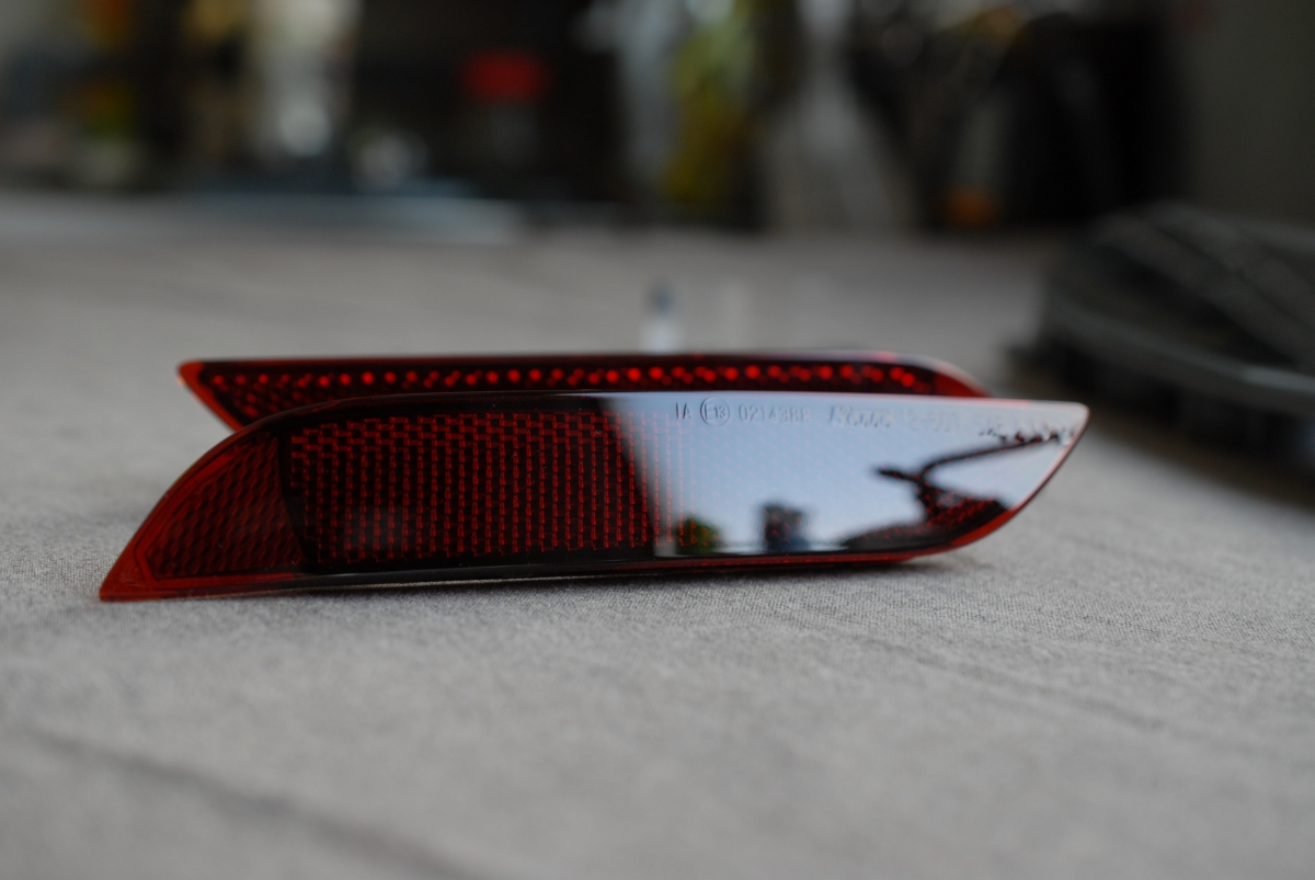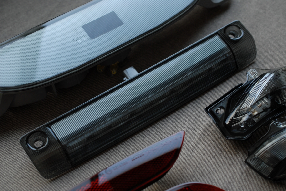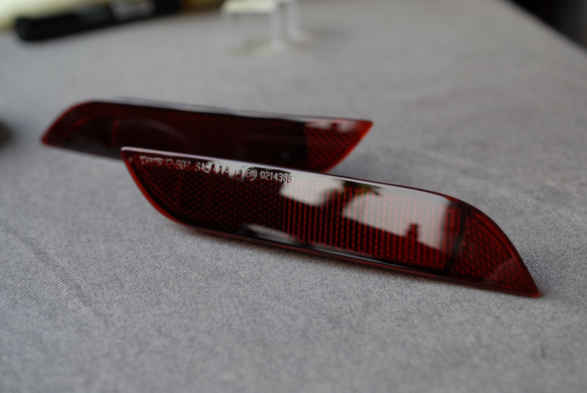 赤いリフレクターレンズは以前施工した同型リフレクターレンズよりも少し濃くしてスモーク塗装を施しました。