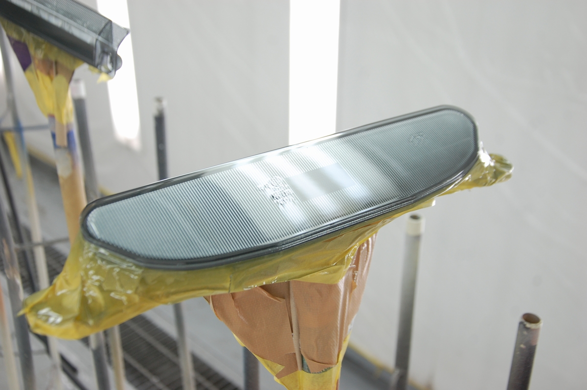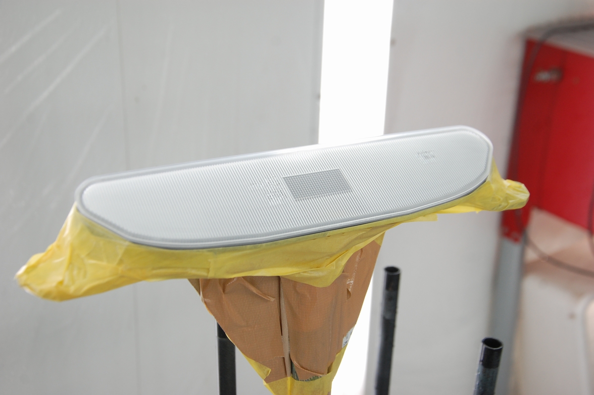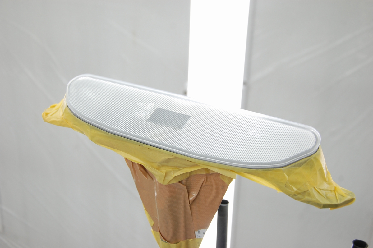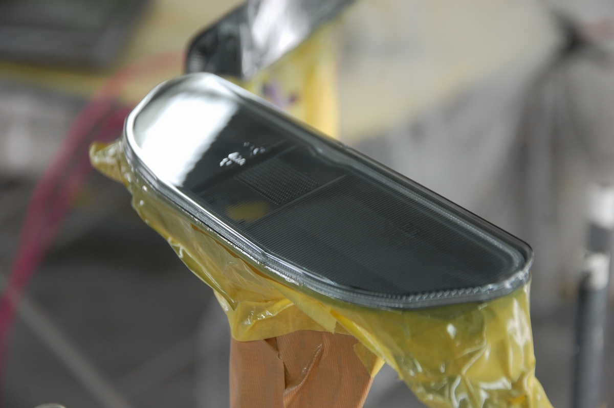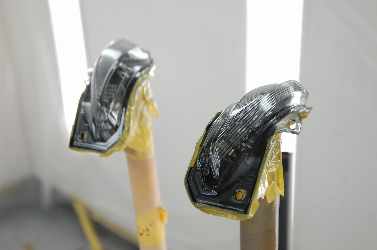 クリアーレンズ部のマスキングシートを剥がし、プラスチックプライマーを塗布します。