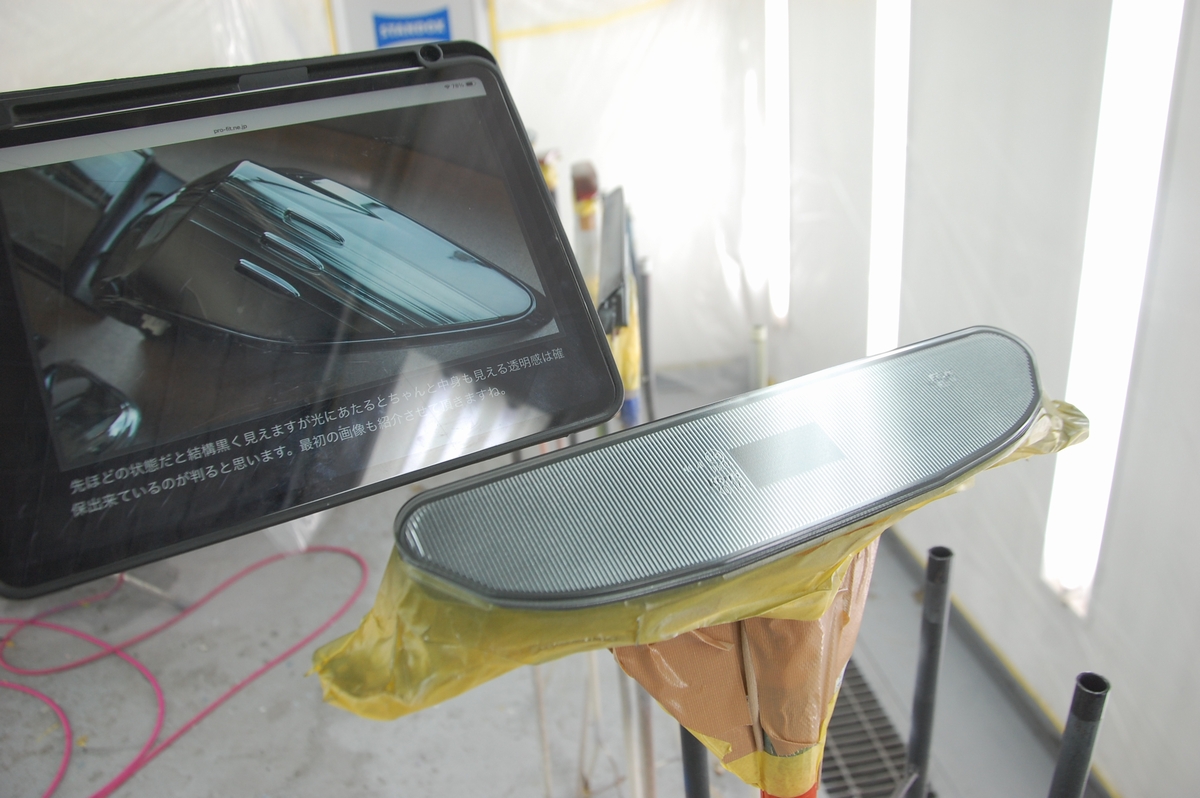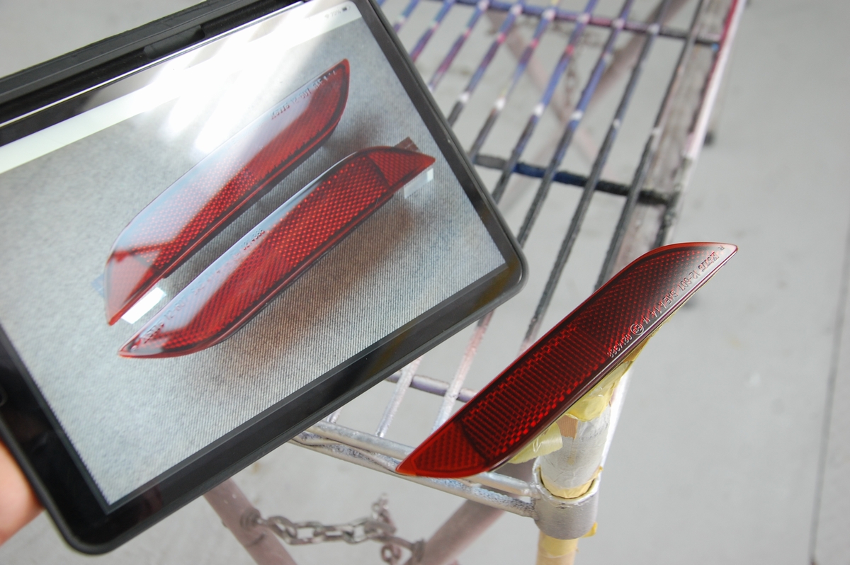 先ほどのTOYOTA86テールランプの完成画像に比べると薄く見えますが、今回のようなカバータイプで面積が大きい場合内部に多くの光を取り込める為、ブース内だと実際の物より明るく見える傾向にあります。