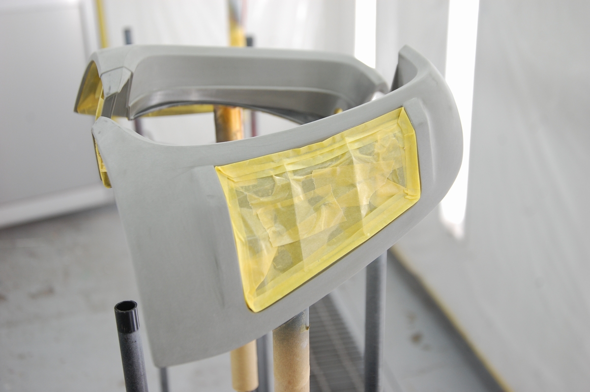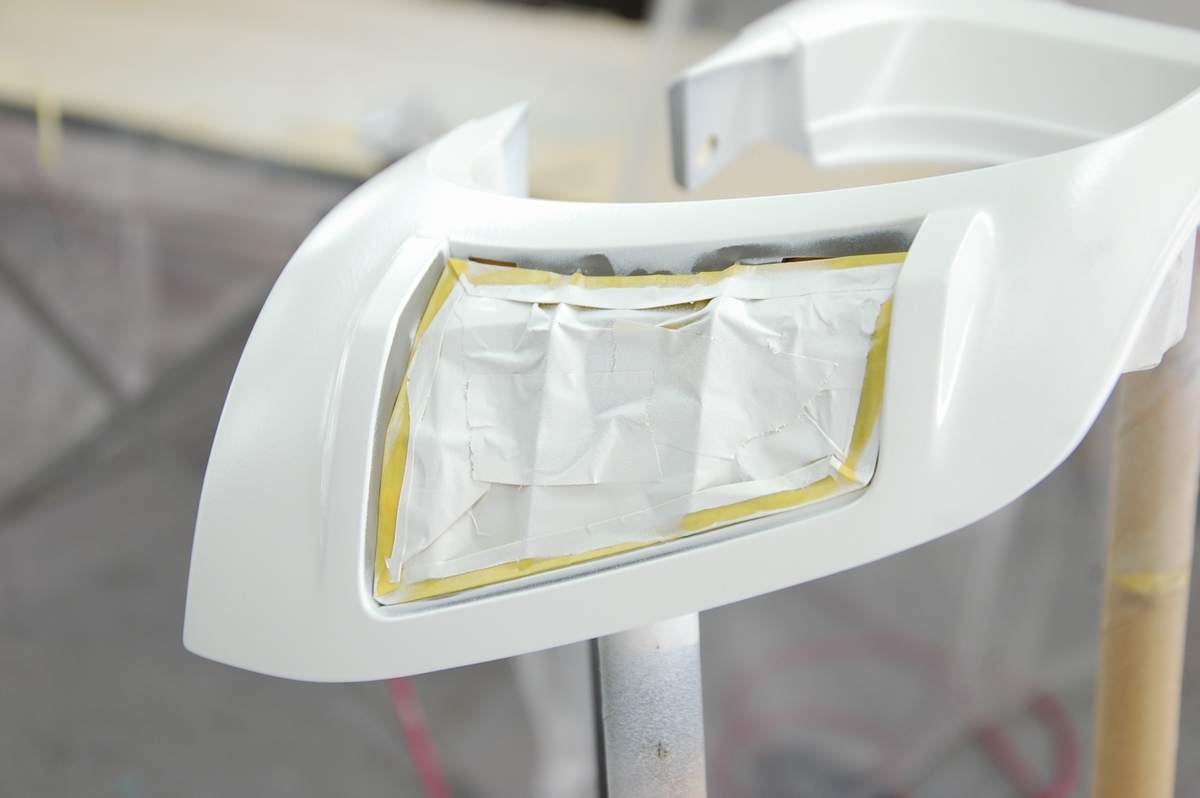カバーパネルが付く箇所は形状が歪で研ぎ難いので、サフェが掛からないようマスキングをしておきます。