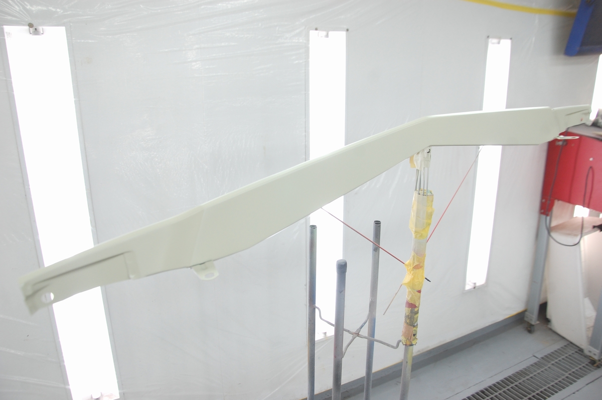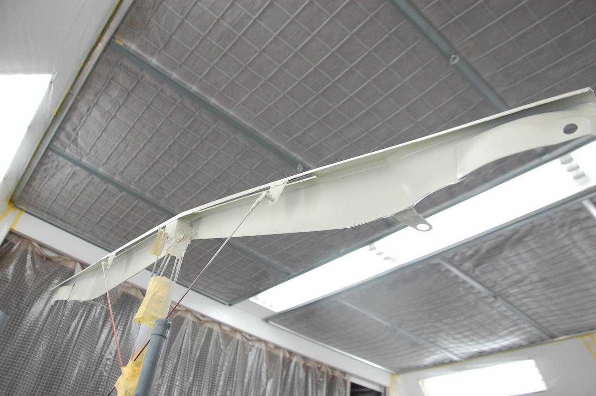 吊るした方が楽なのですが(通常の塗装屋さんならそうしますし私も昔はそうしていました)、裏側の塗り難い箇所はやはり持って塗った方がしっかり塗れるので、今は可能な限りこのシステムにしています。