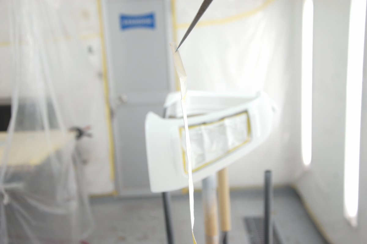 ラインを整えたい箇所にサフェをしっかり塗り込んだら、マスキングの見切り部分に貼ってあったテープを剥がします。