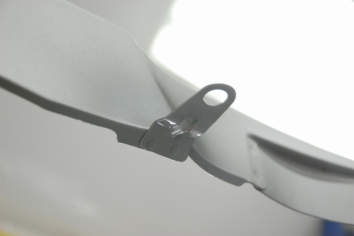 表側は後で研ぎ作業を行なうのでサフェそのままとなります。どの道ガイドコートとしてベースコートの黒を塗ったりするので塗料が飛んでも問題ありません。