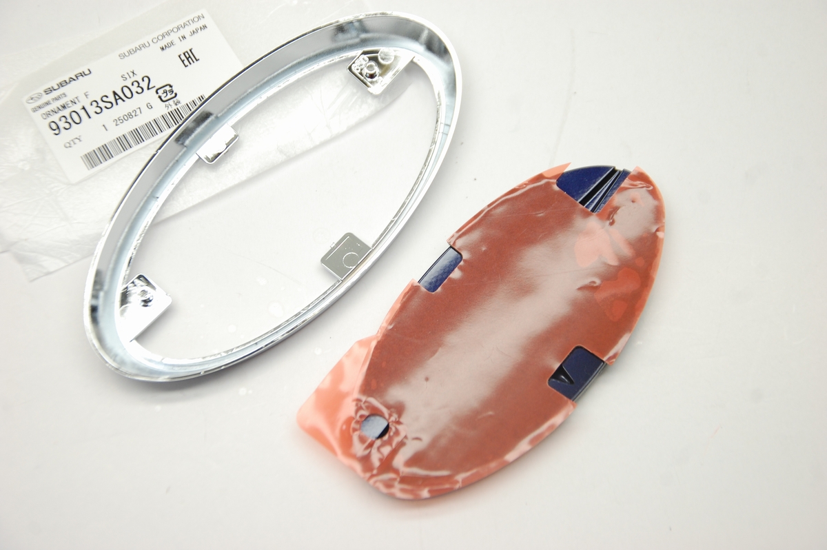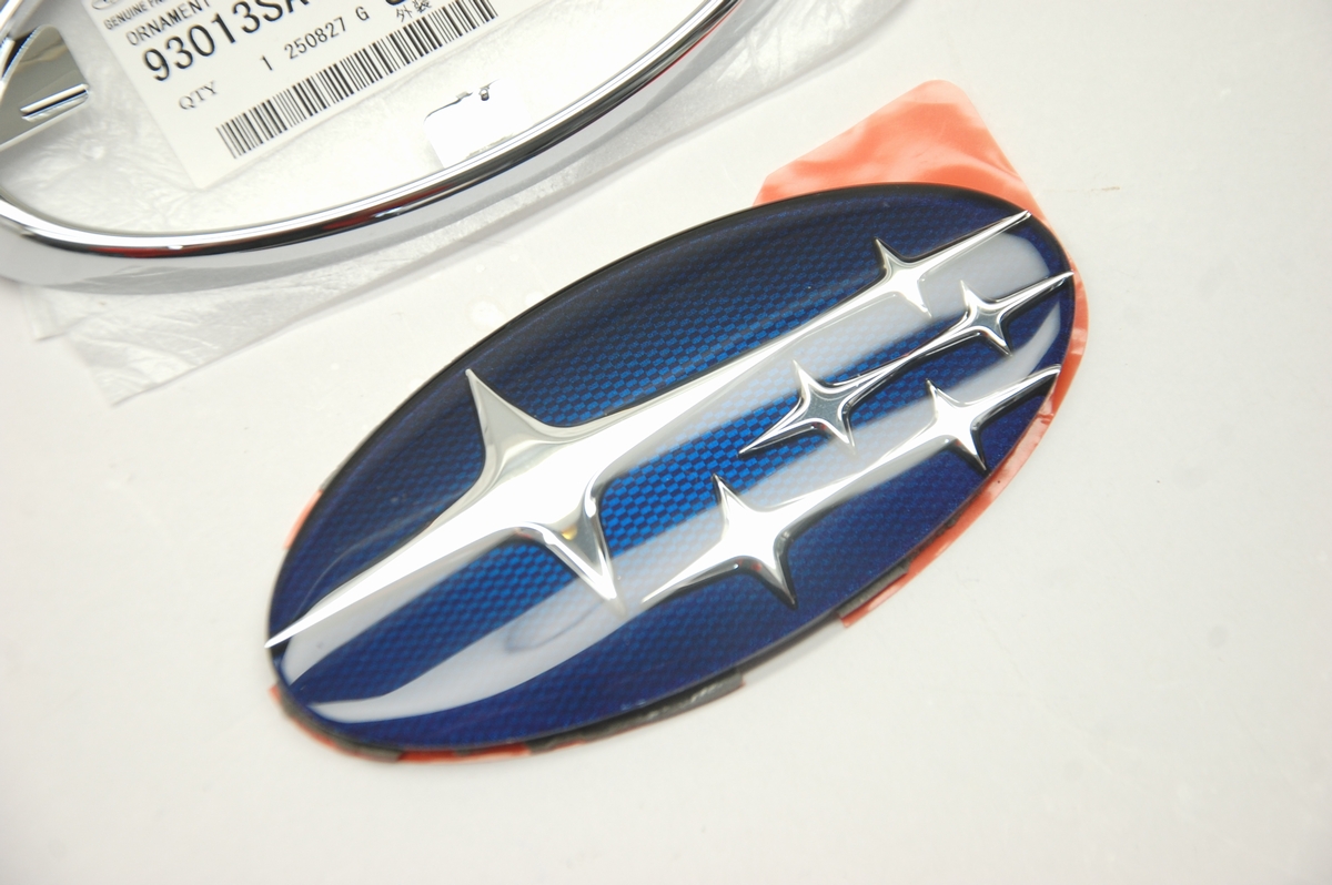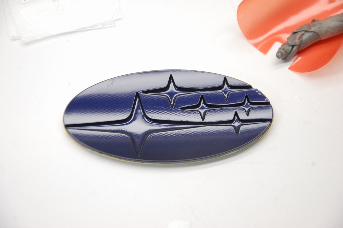 スバルエンブレムの背面はスバル純正色のWRブルー(カラーコード:K7X)で、
