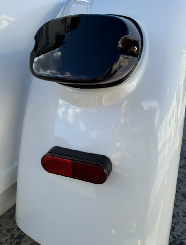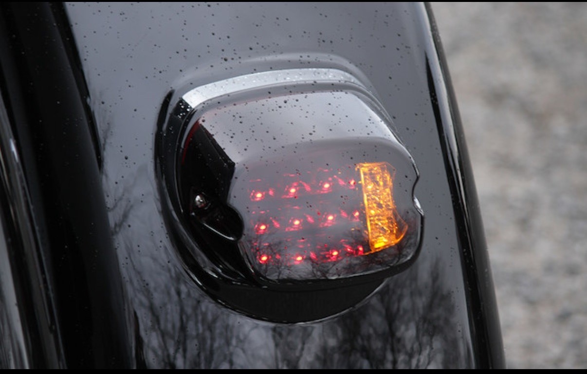 テールランプが二つあるのはそれぞれ左右に着くからで、ハーレートライクは通常の2輪車と違って後ろのタイヤが左右に二個ある3輪タイプだからですね。