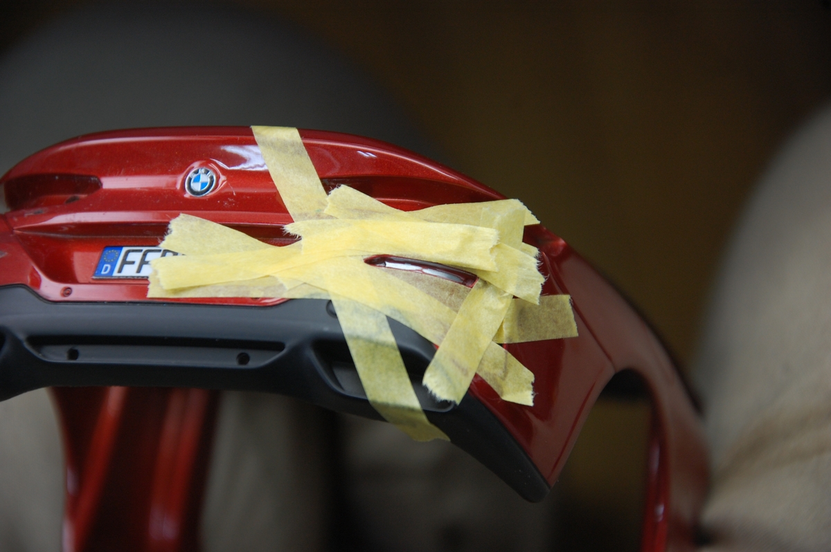 あとうっかりしていましたが、リヤのナンバープレートはパーツでは無く、車体本体の形状にデカールが貼られた構造なので、今回これを日本仕様のナンバープレートに変更で承っていますから、この段さを平らに削らなければなりません。研ぎにくい場所なのでアルミ素地をそのまま平らにする事は難しそうですから、多少削り過ぎるくらいにして、その後パテでラインを成型しようかと思います。