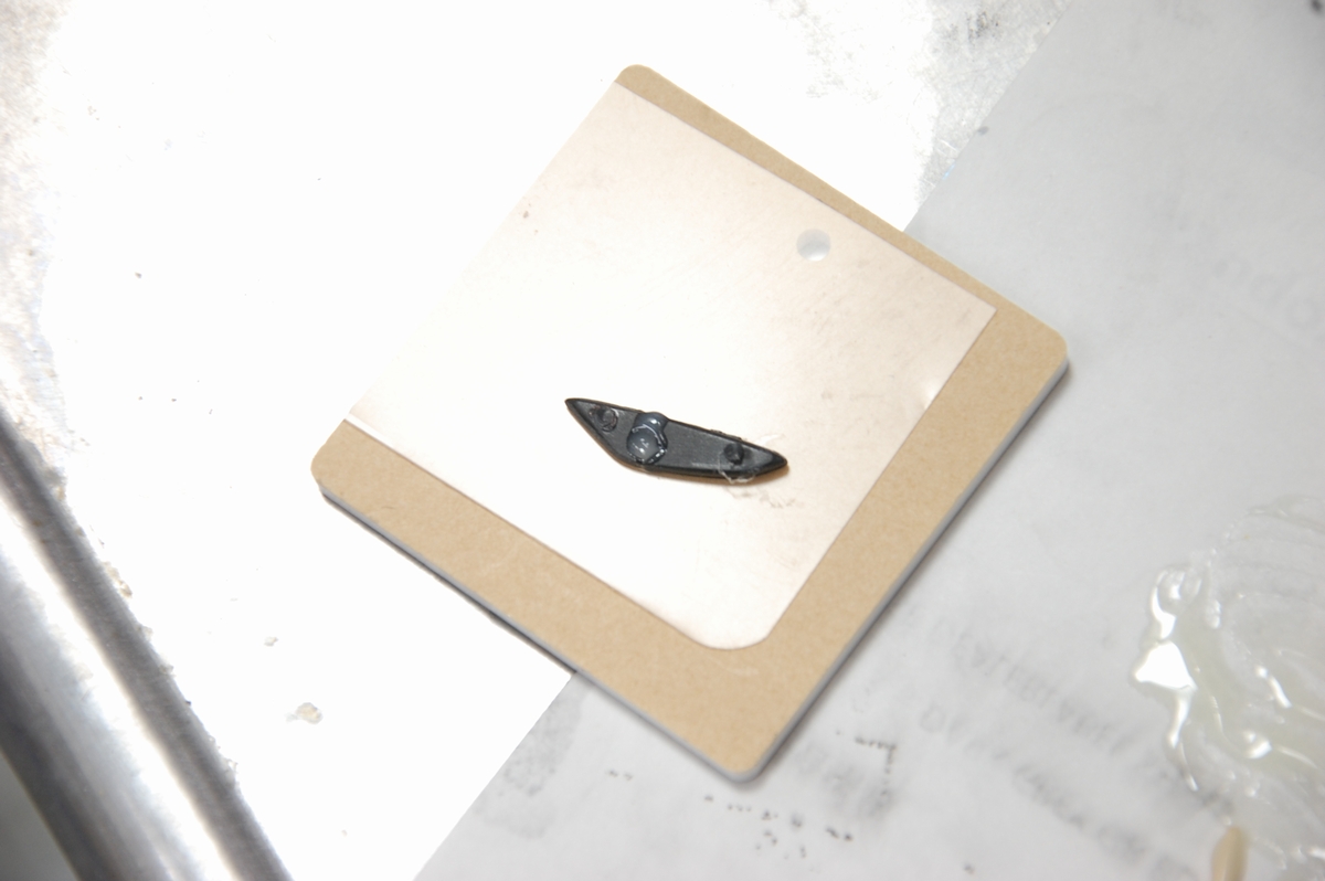 ただそんなに複雑な形では無いので、だったらという事でアクリル樹脂の端材を削って作ろうとしましたが、やはりというかサイズが小さ過ぎる(厚みも薄すぎる)ので中々上手く出来ず、