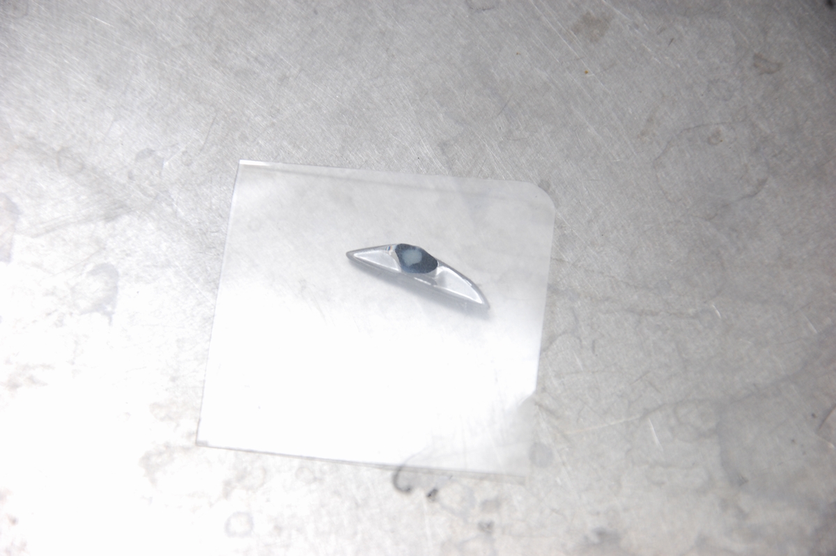 サイズ自体が小さいので(高さが1mm程しかありません)、フェンダーダクトを外した時のように裏からドリルでサービスホールを開けるにしてもピンポイントで位置を合わせるのは難しく、また透明レンズ(透過性パーツ)なので傷をつけたら使い物にならなくなってしまいますから、