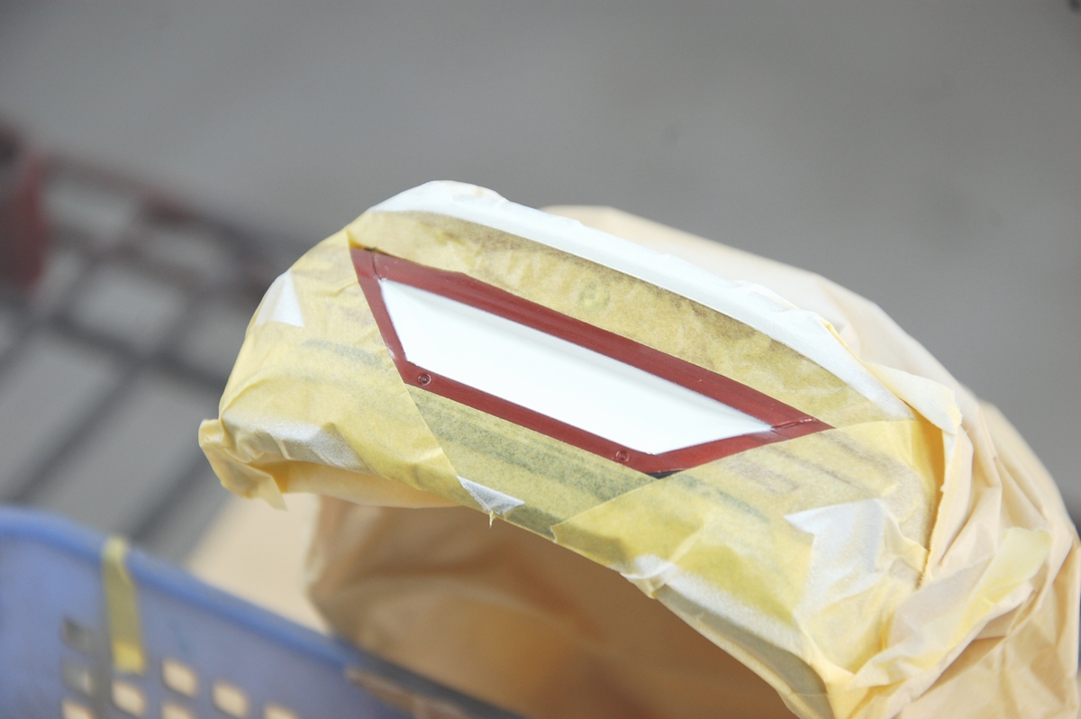 この後は裏側にミラーシートを貼り、表から透過性の赤=レッドキャンディーを塗る予定です。今回使っているUVクリアーはポリエステル樹脂系ですから、元々のPS=ポリスチレンと違い普通に塗装が出来るのは良かったです(PSは溶けてしまいますので)。