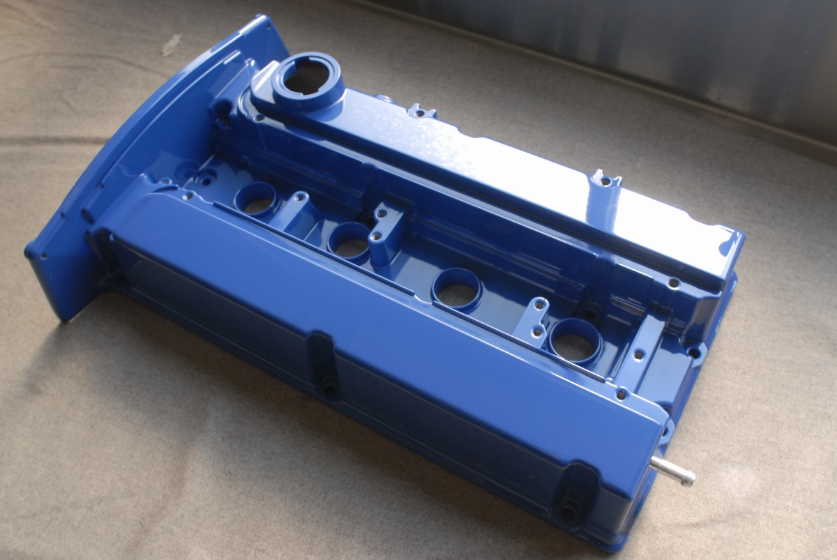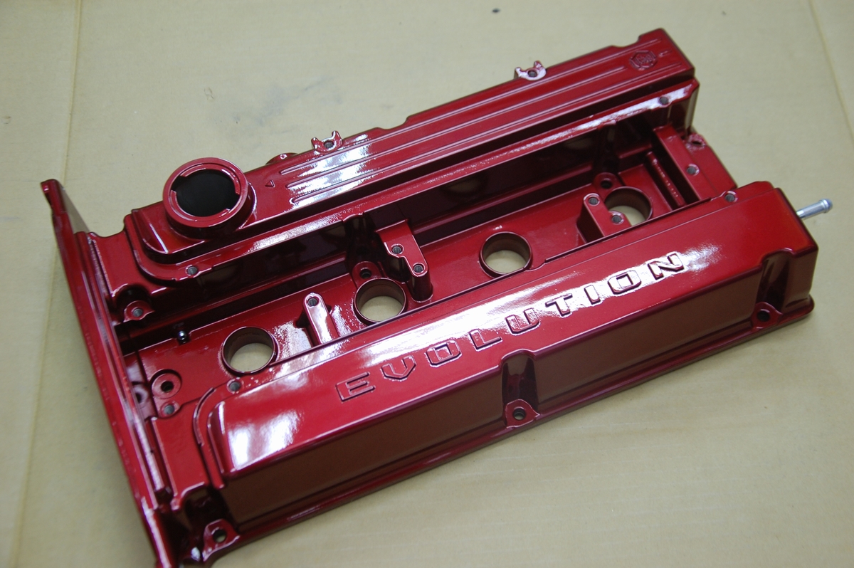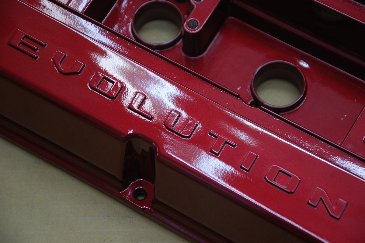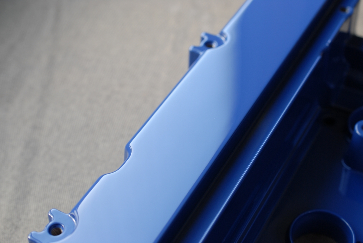 この時のスターレットのヘッドカバーも同じようにプラグキャップ取り付け部とボルト固定部には結晶塗装を塗らないようにしています。アルミ素地をそのまま残すならそんなに面倒では無いのですが、それだとそこから腐食が始まったり見た目も格好良く無いんですよね。