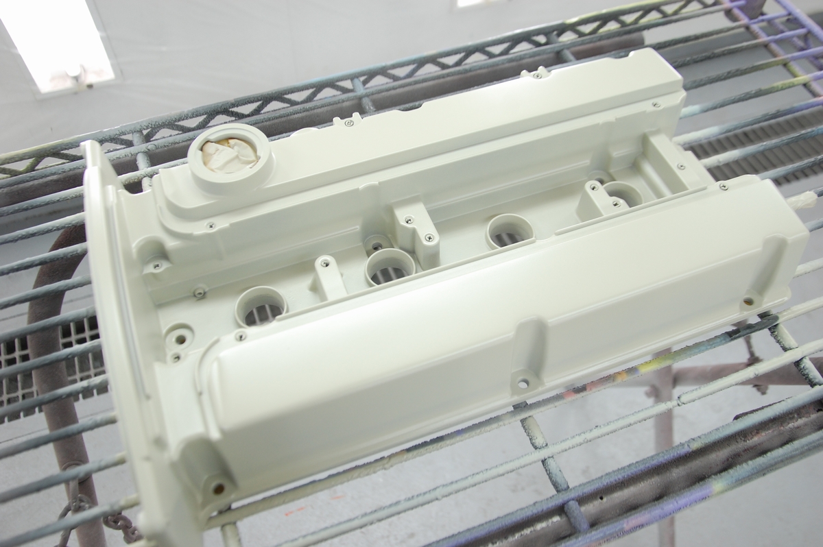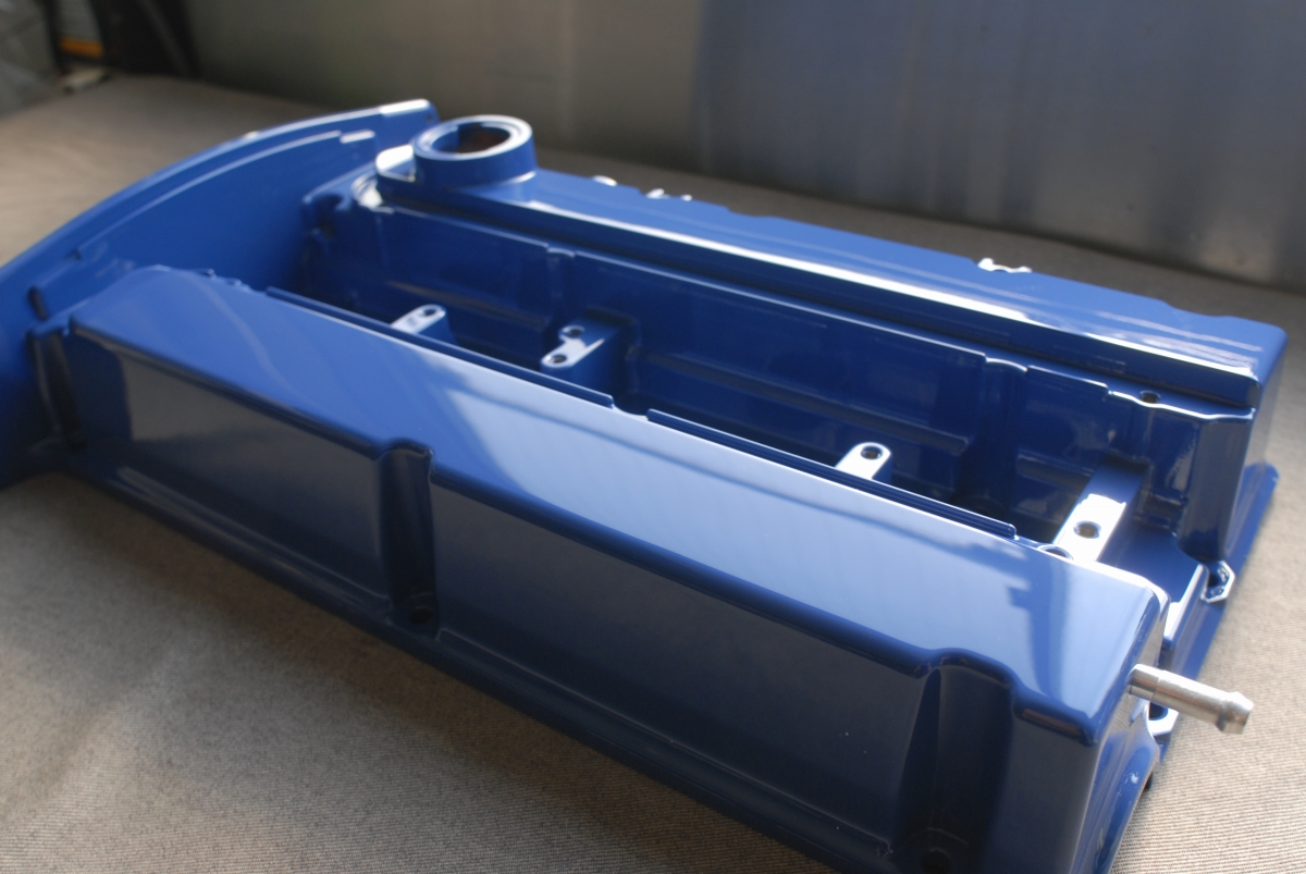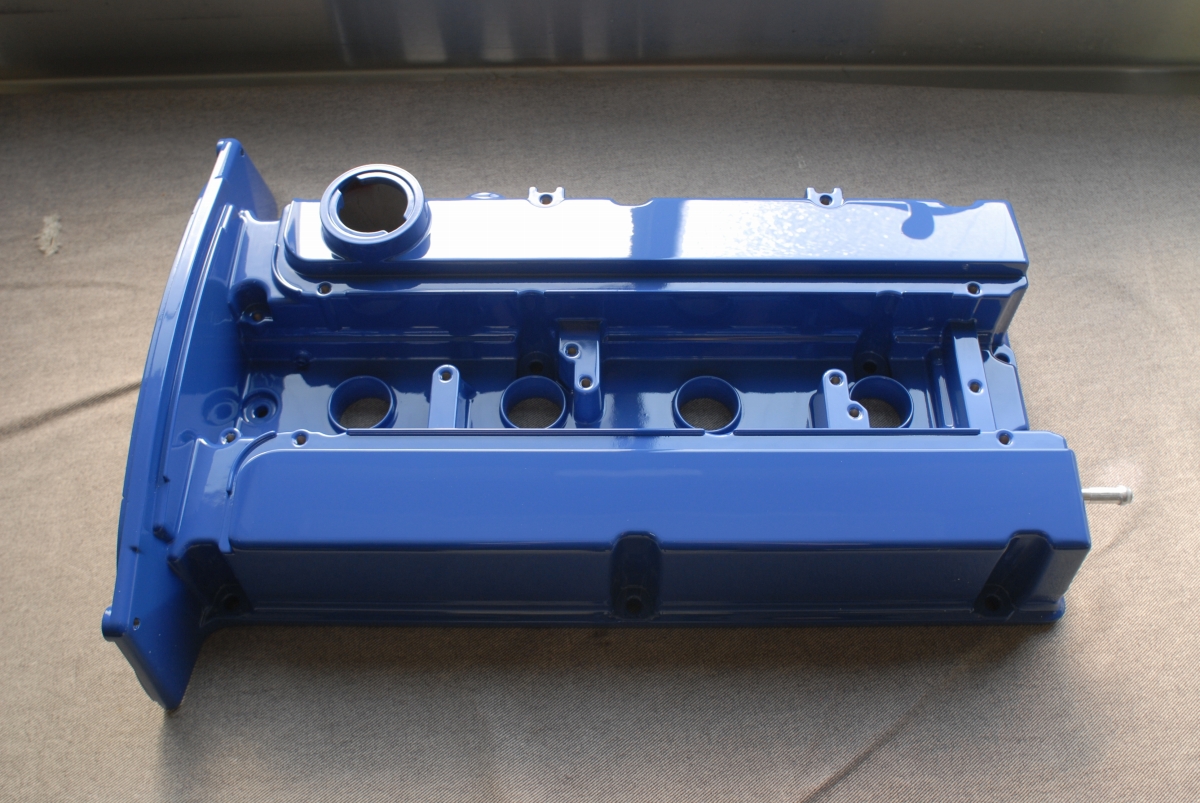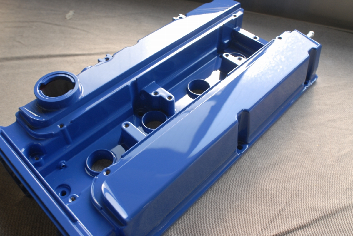 この時のスターレットのヘッドカバーも同じようにプラグキャップ取り付け部とボルト固定部には結晶塗装を塗らないようにしています。アルミ素地をそのまま残すならそんなに面倒では無いのですが、それだとそこから腐食が始まったり見た目も格好良く無いんですよね。