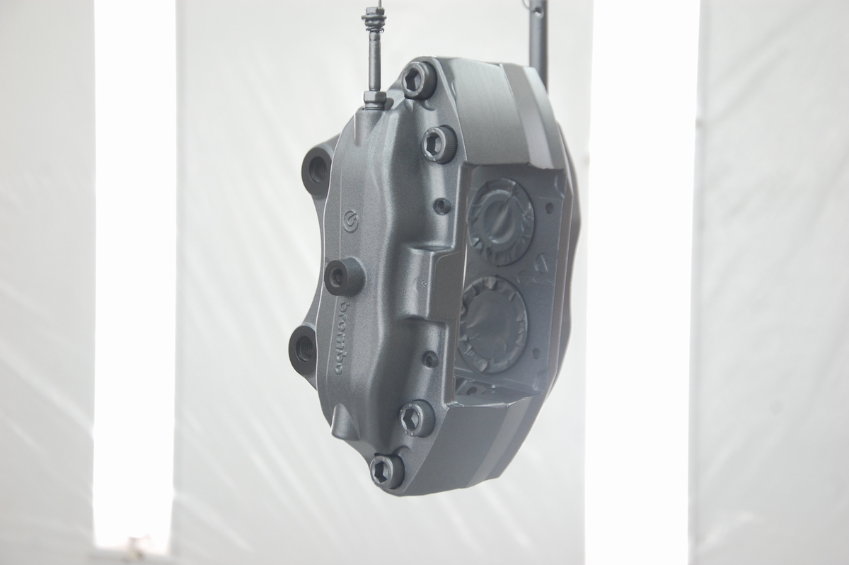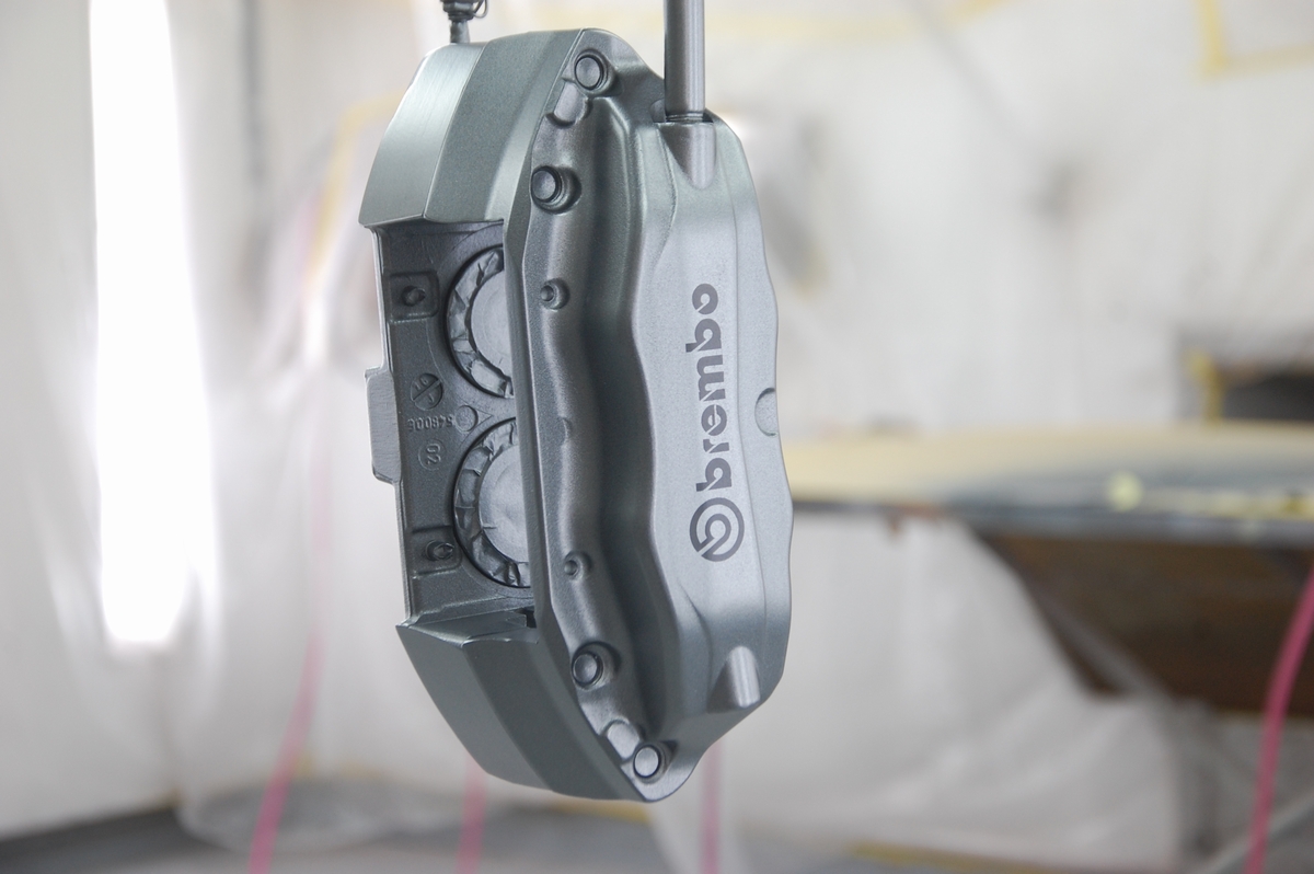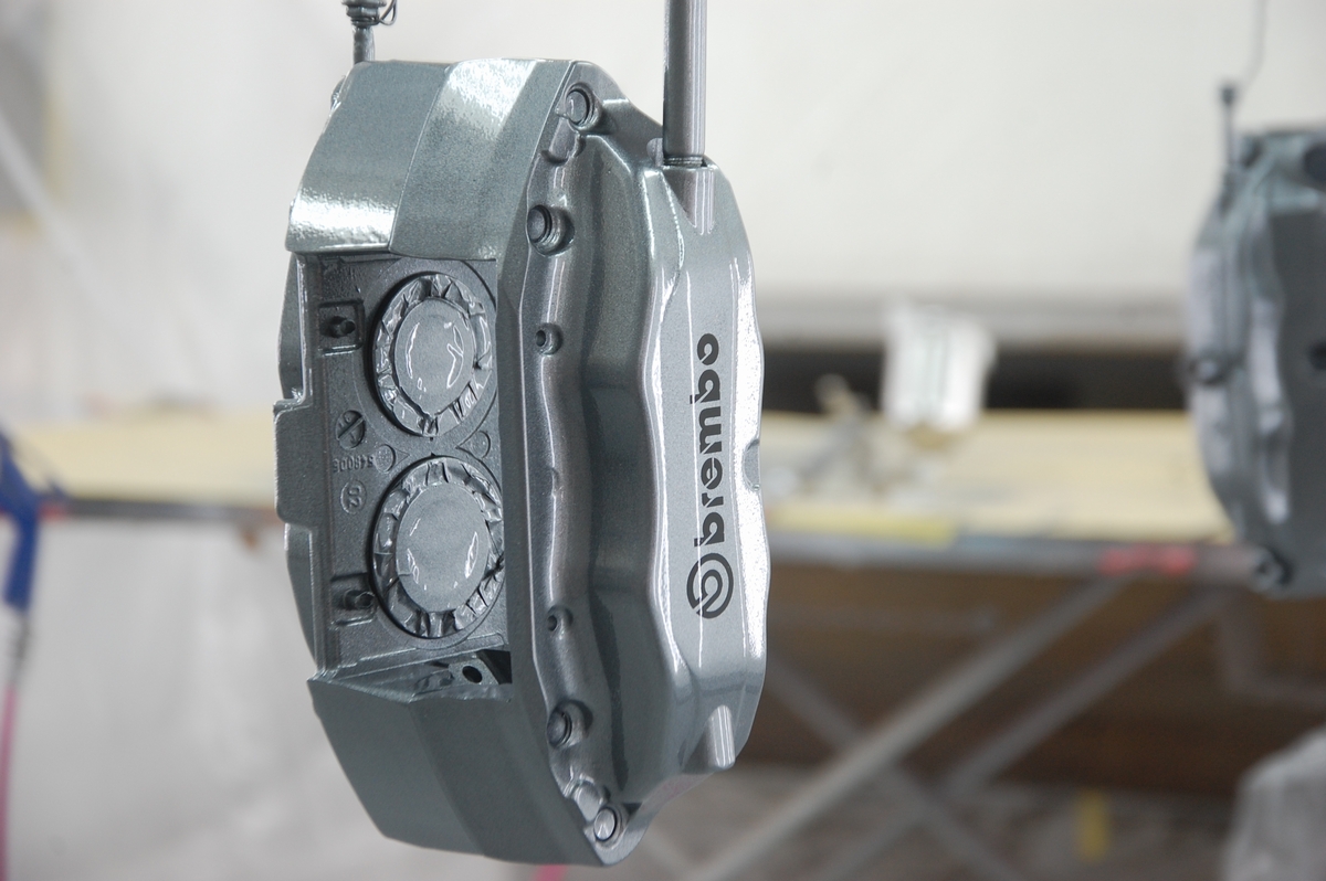 大変お待たせしました!先日本塗りを終えていた日産Z33用ブレンボキャリパーの塗装、本日完成となります。