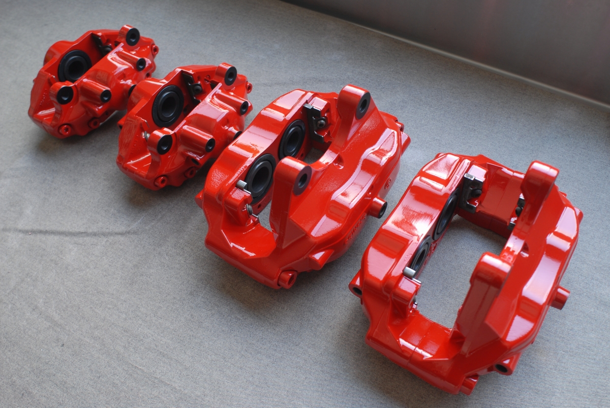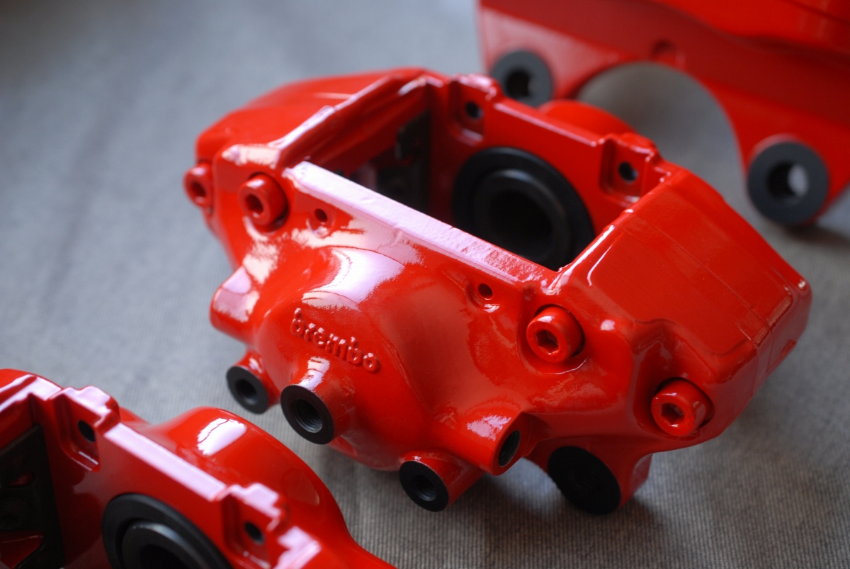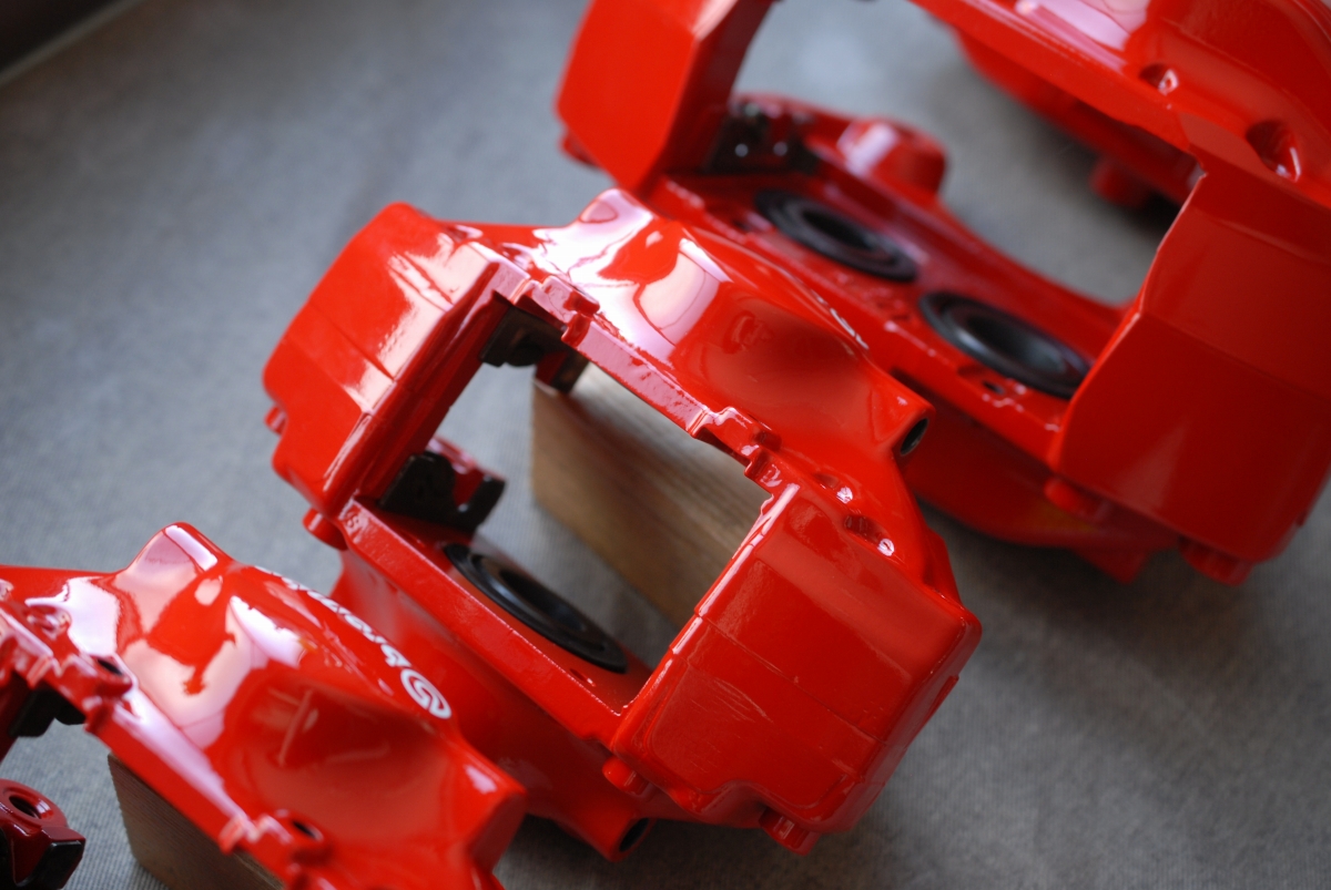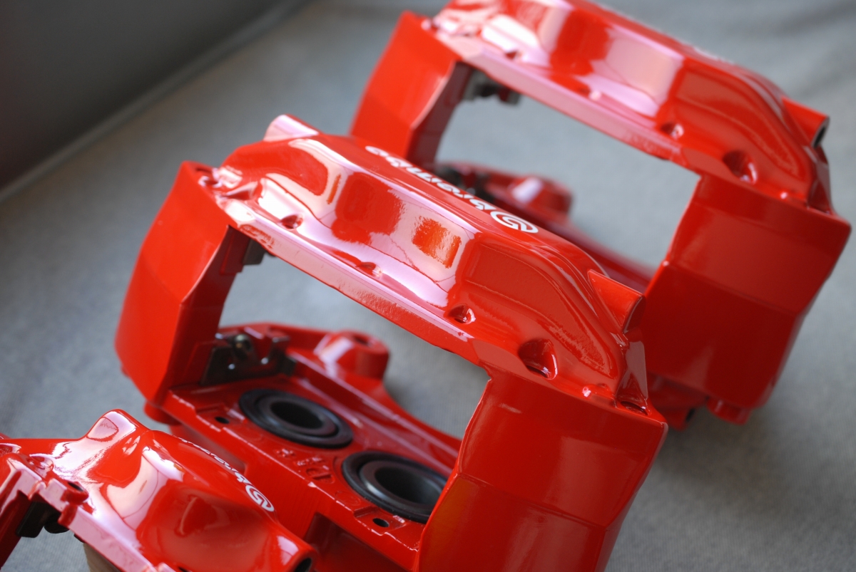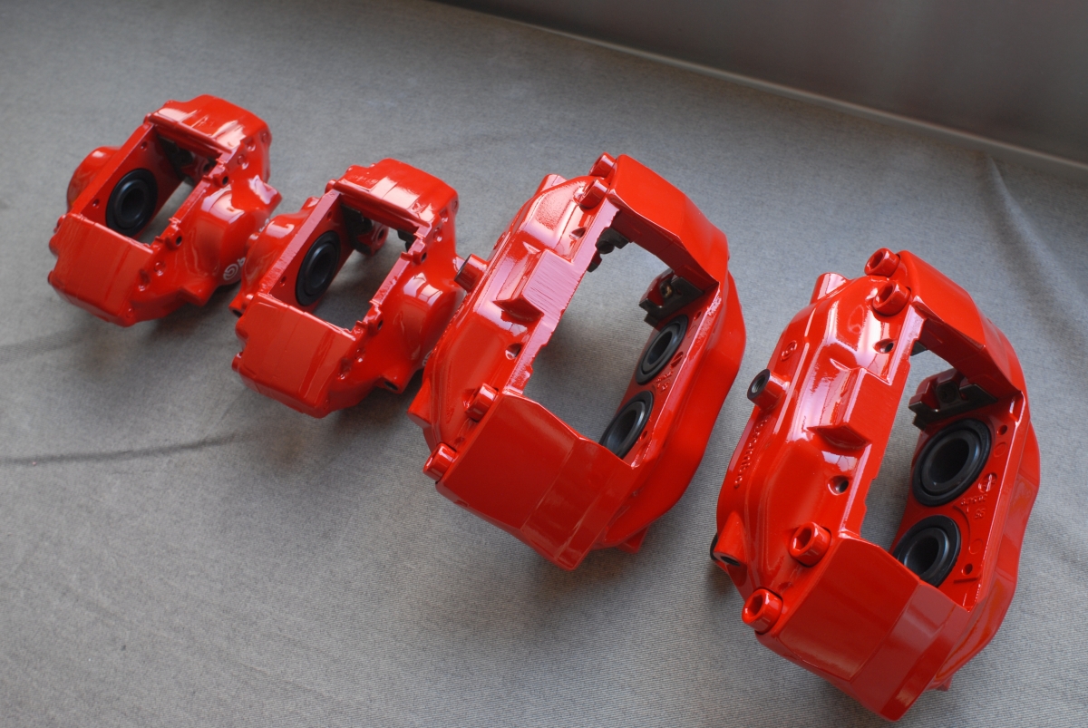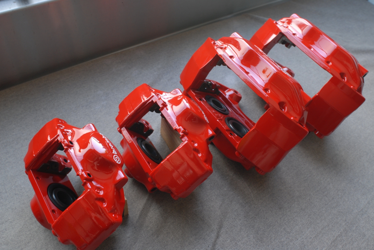 先日プライマーを塗っておいたランサーエボリューション純正のブレンボキャリパー一式です。