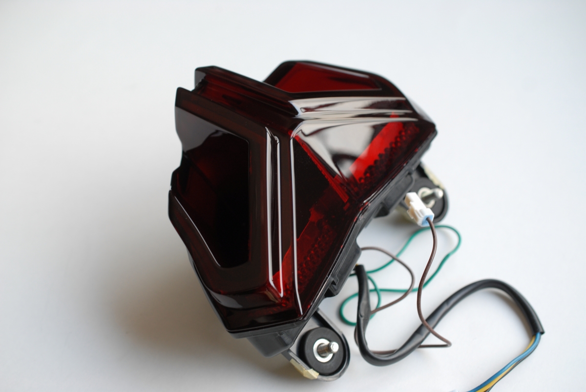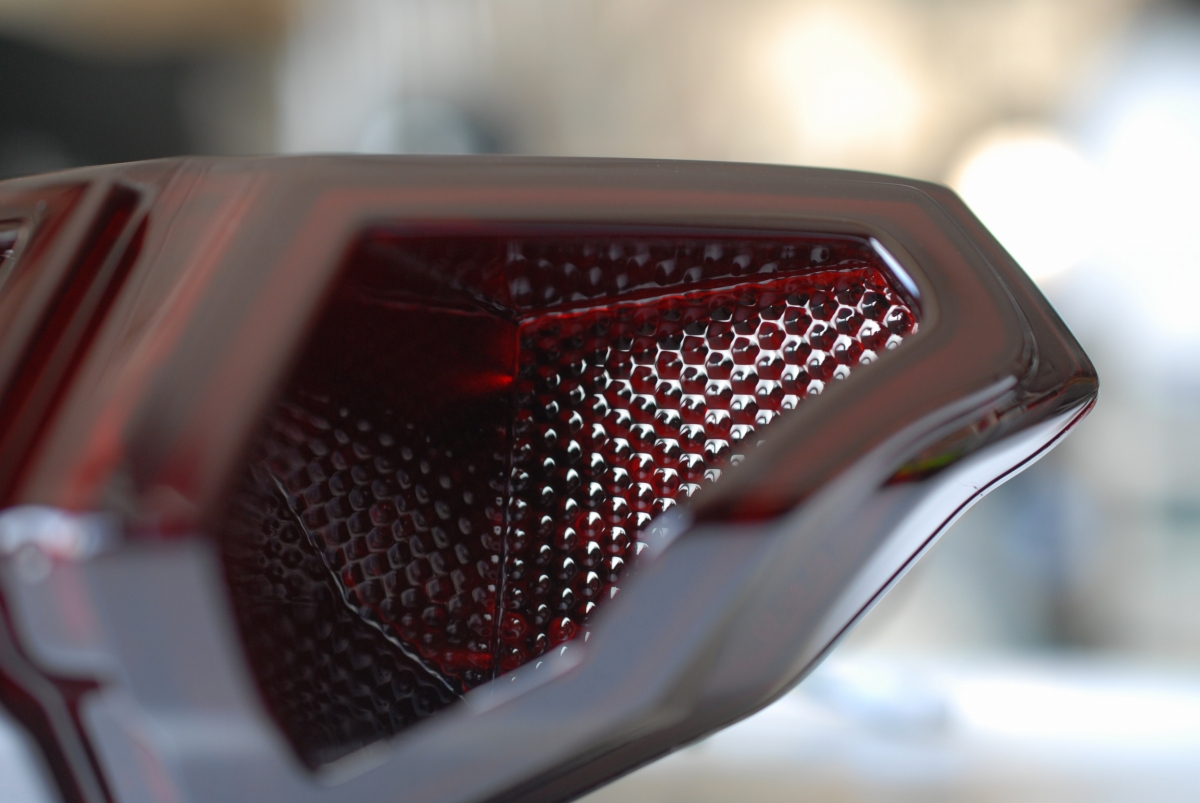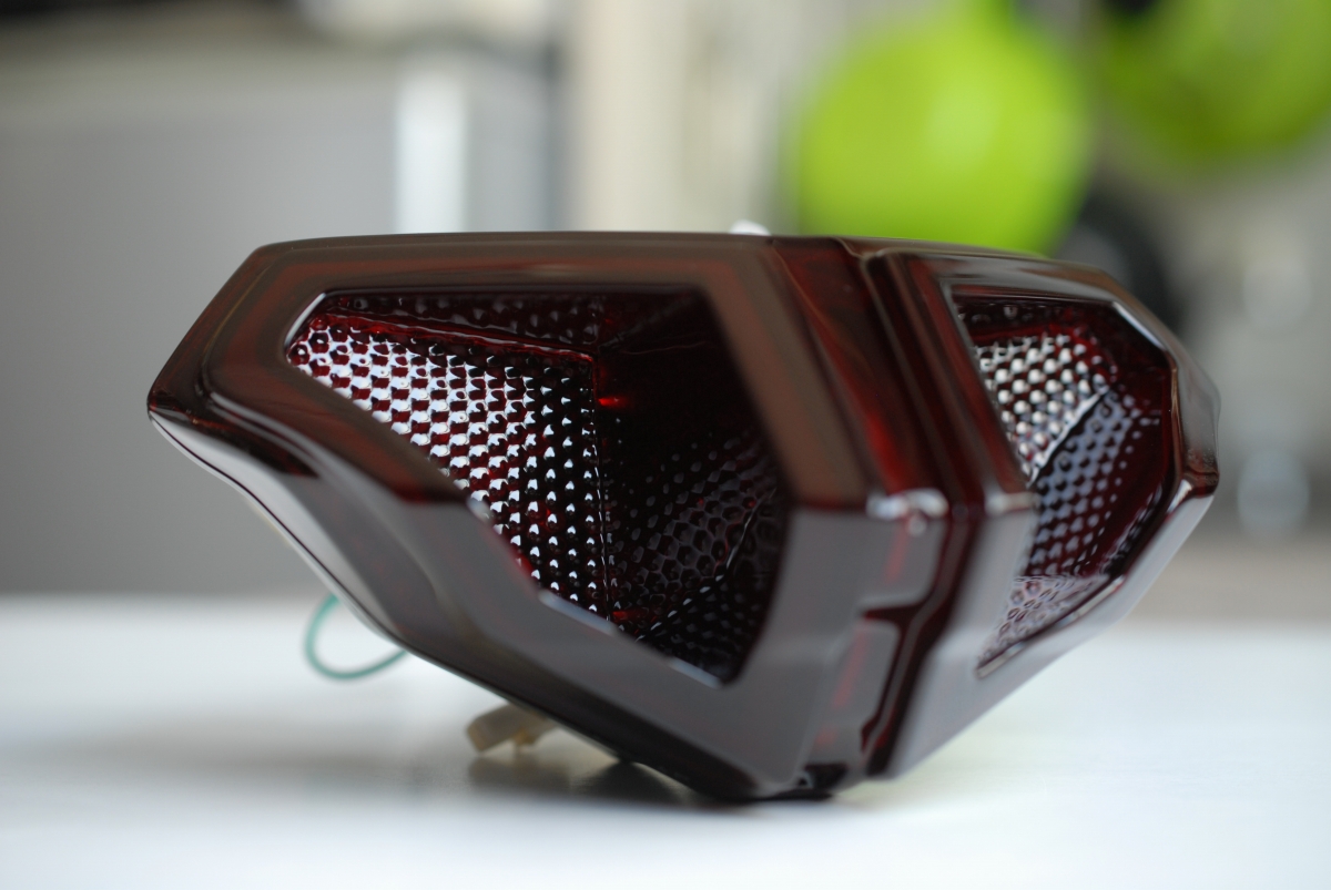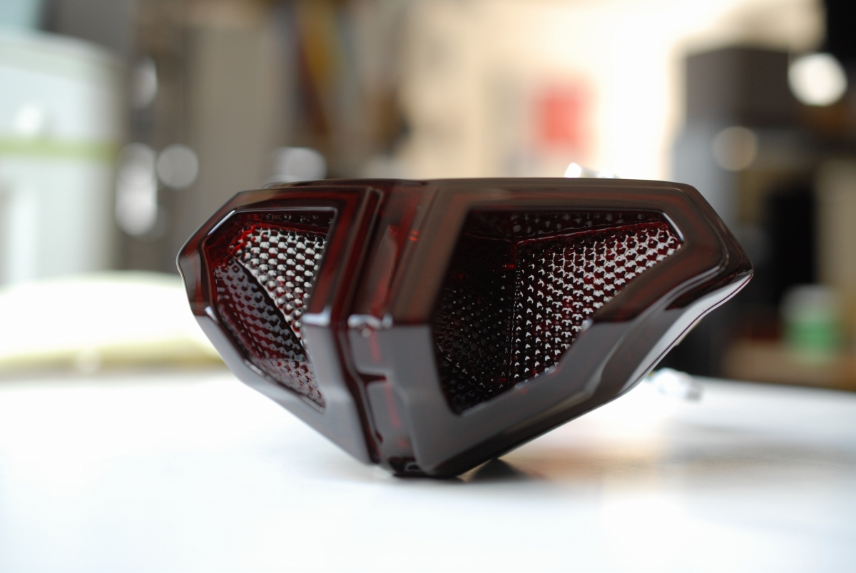 レンズは既にスモークになっていて(塗装では無く着色樹脂)、今回はこちらに透過性の赤=レッドキャンディー塗装で承っています。