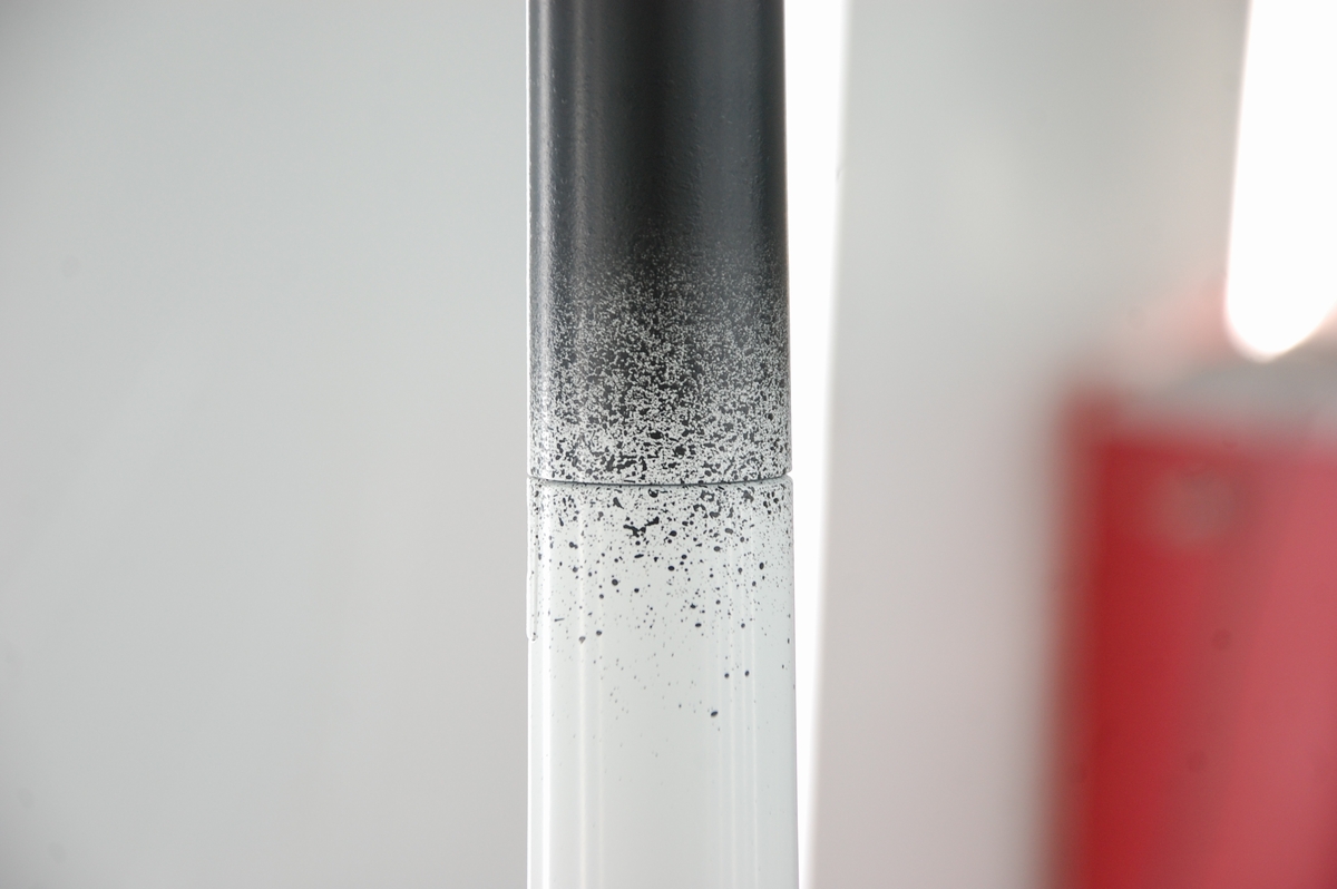 まずはベースカラーの白として、フォルクスワーゲン「キャンディホワイト」(カラーコード:LB9A)を塗布します。画像はテスト用の塩ビパイプです。