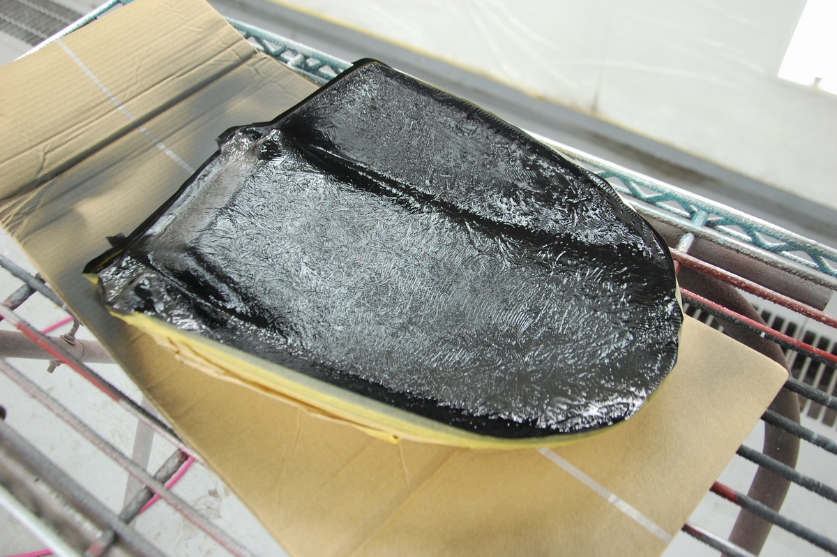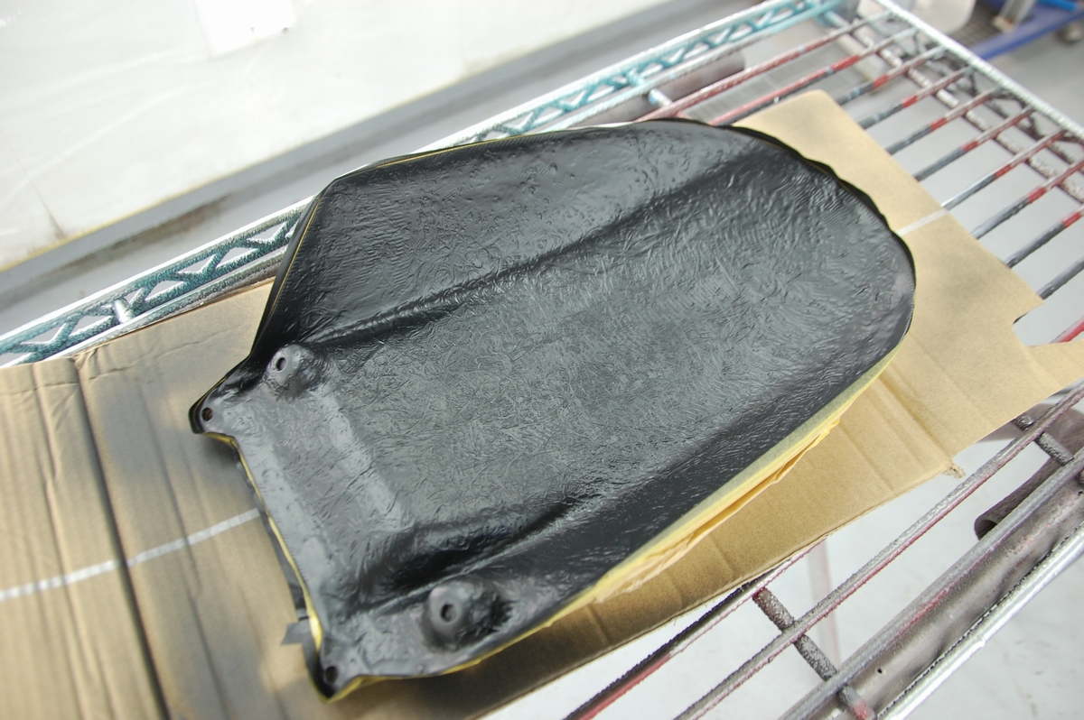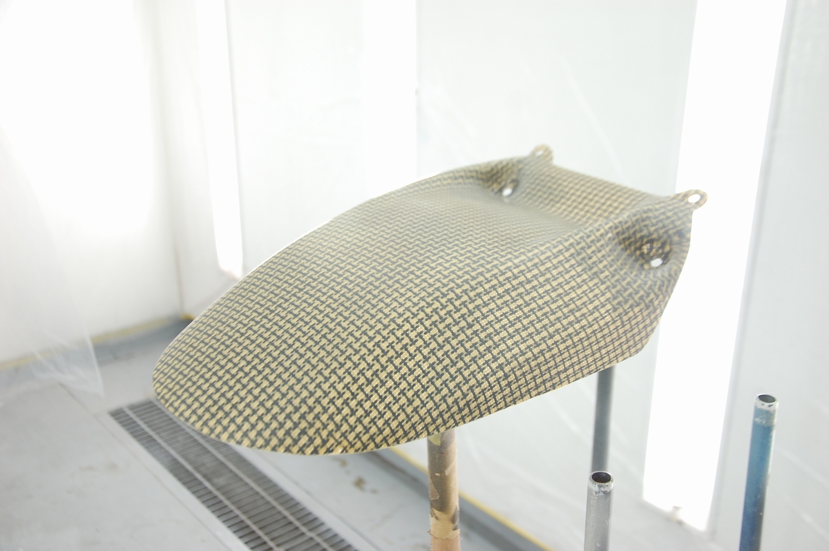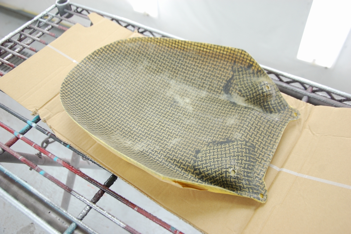 先日お預かりしておりましたバイク用のカーボンケブラーリアフェンダーです。恐らくはアプリリアに装着される物ですね。