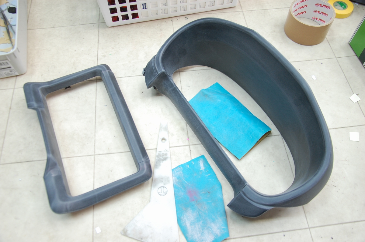 同じくこちらのメーターフードも元々梨地だった物で、クリアーの下塗りで平滑な下地にしています。