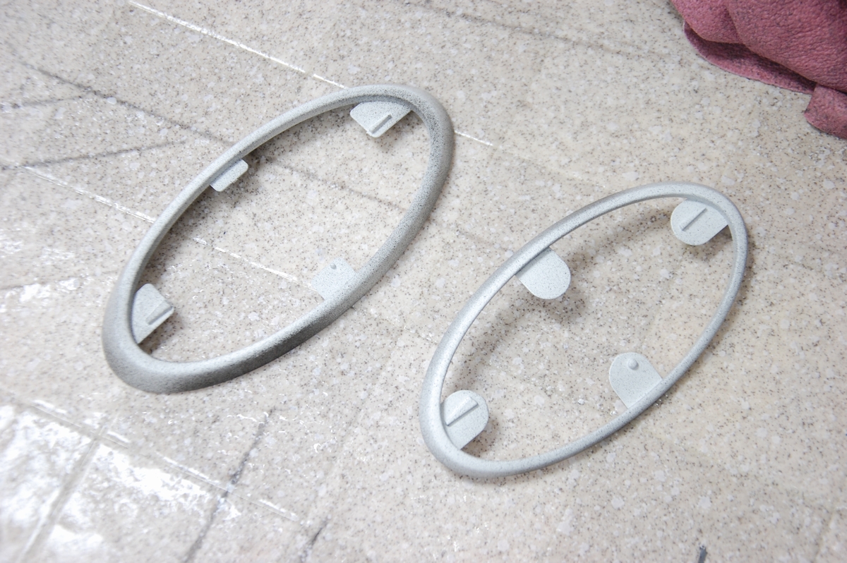 ちなみにトラブルが生じたエンブレムはこちらで新品を買い直していて、そんな事なら受付を辞めてしまうのが一般的(正攻法)だと思うのですが、私的にそういったトラブルの改善が結構好きなので、何とか対応出来るようにした次第です。ちなみに当初はこの下塗りについては公にしていなかったのですが、ここまでの手間を掛けられるなら(同業者の方で同じようにやって貰えるなら)という事で作業内容を紹介するようにしました。尚これと同じような事で、メッキ素地への塗装や塗装不可能とされたPE=ポリエチレン樹脂への塗装方法もいずれは紹介しようかと思っています(ちなみに完全秘密主義と言う訳では無く、知り合い等には普通にオープンにしています。誰でも簡単に見れるウェブ上での紹介を控えているだけといった感じです)。