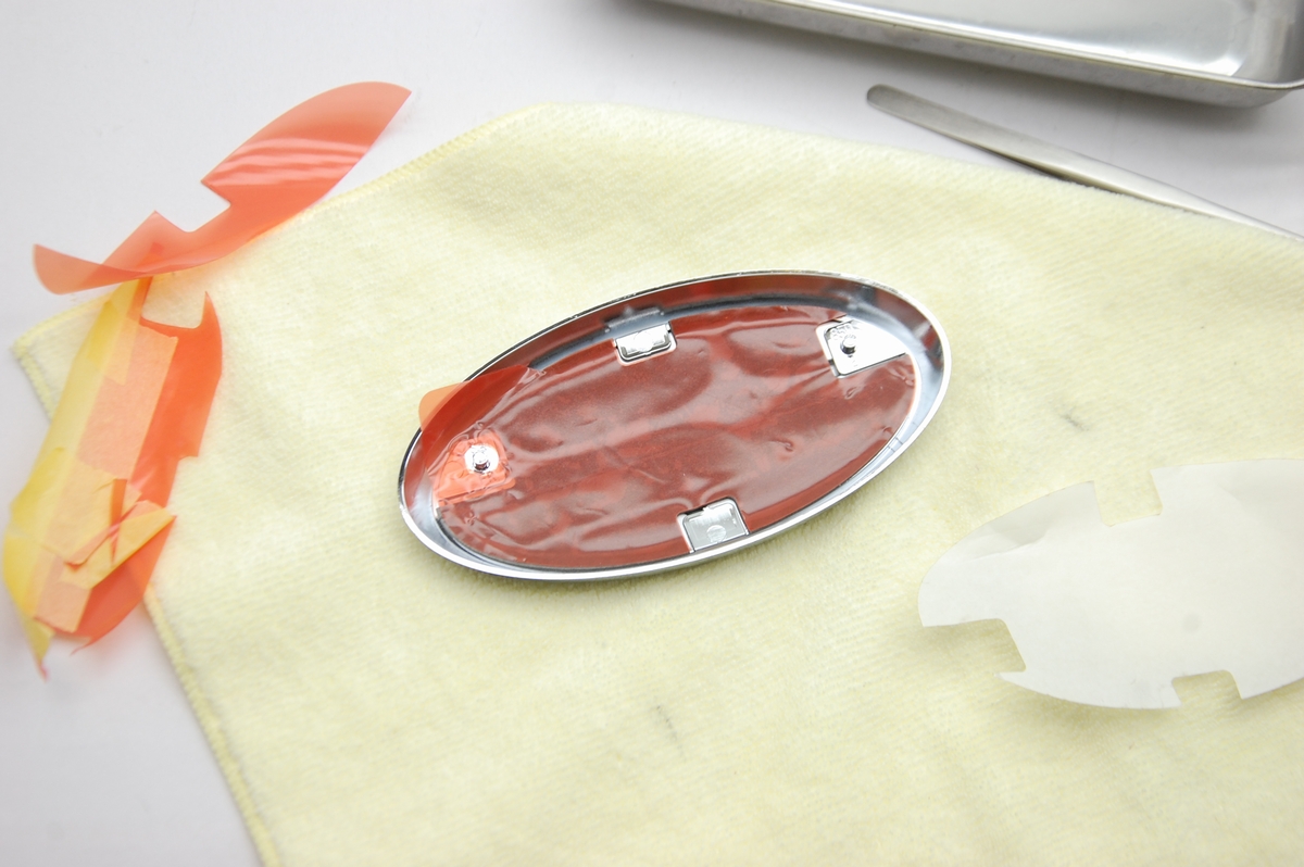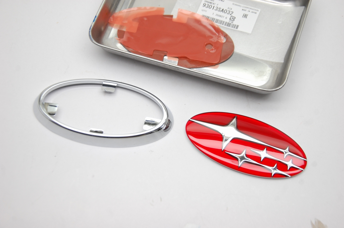 先日透過性の赤=レッドキャンディーを塗っておいたスバル純正エンブレムです。その後60℃40分程の熱を掛けて塗膜を硬化させておきました。