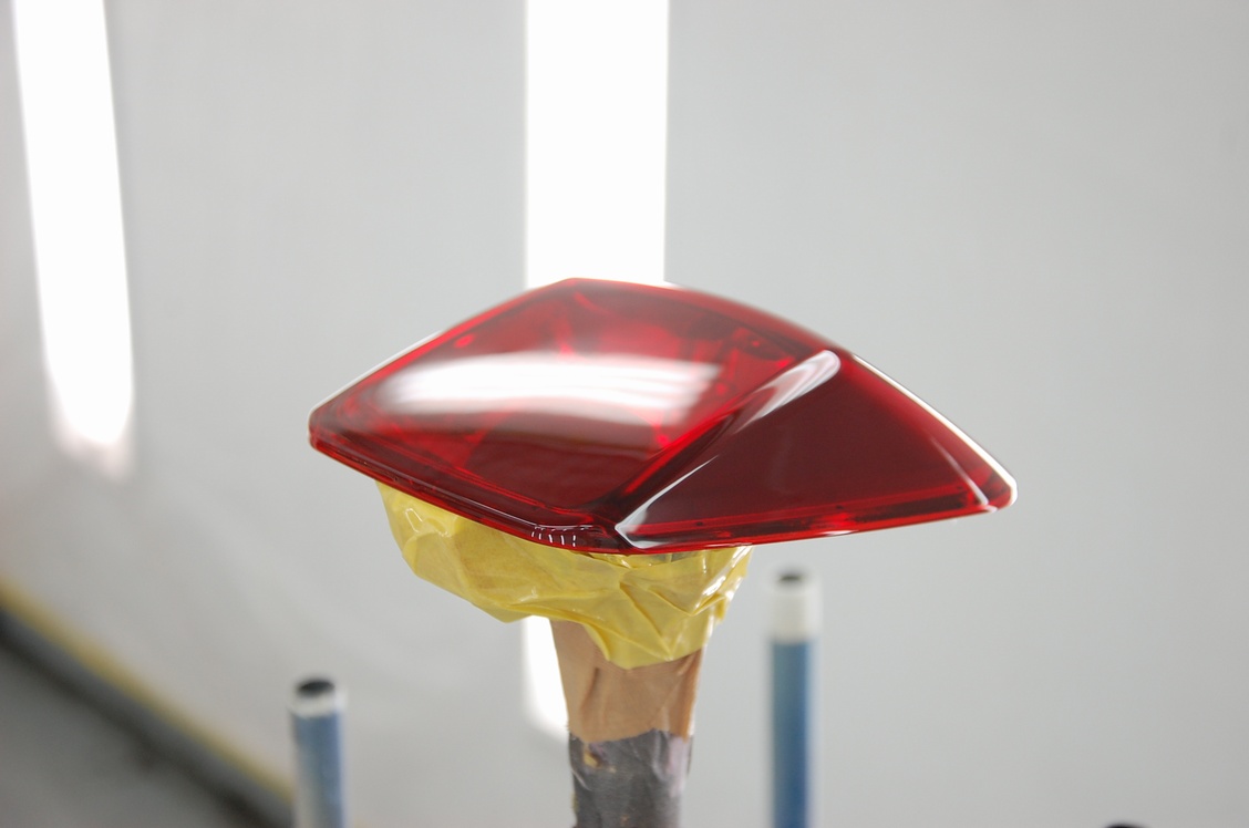 最後に薄くスモークを塗って、オーナー様が御希望とする「少しだけスモークかな」「渋い赤色」のイメージに近づけます。オレンジの上にレッドを重ねるのでもしかしたら色味が濁ってしまうかもと懸念しましたが、問題無かったようです。ご安心くださいませ!