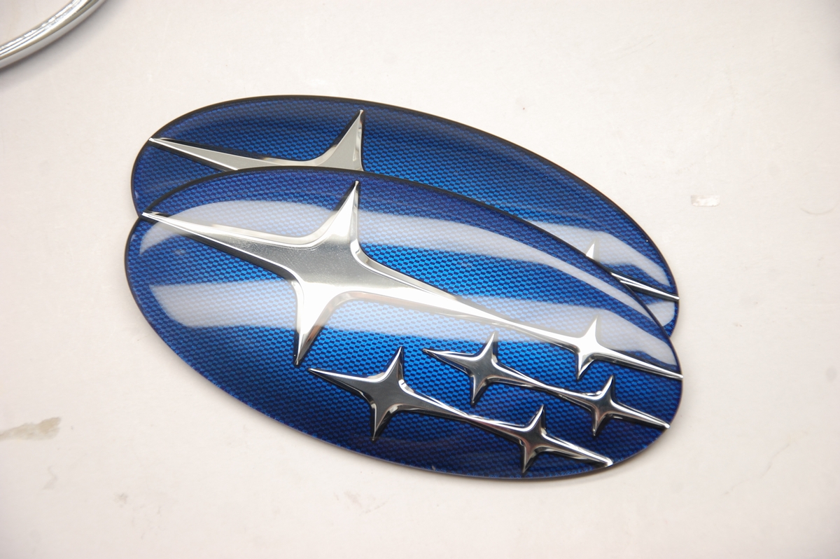 スバルエンブレムの背面はスバル純正色のWRブルー(カラーコード:K7X)で、